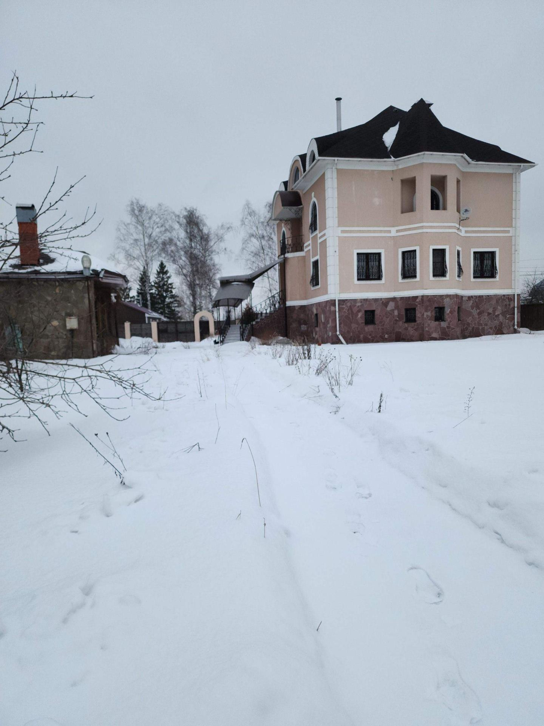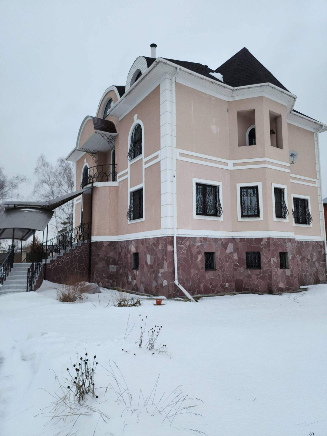 Дом 390 м² кирпичный, оштукатуренный, четырёхуровневый с участком 20 соток.