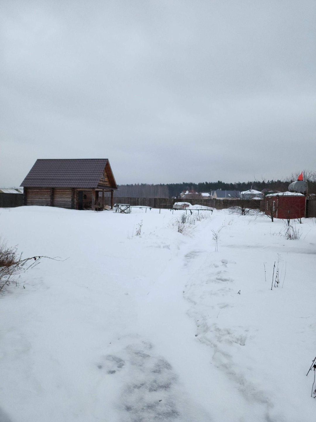 На участке Баня (сруб) 60 м², летняя беседка - 30 м² с камином и мангалом.
