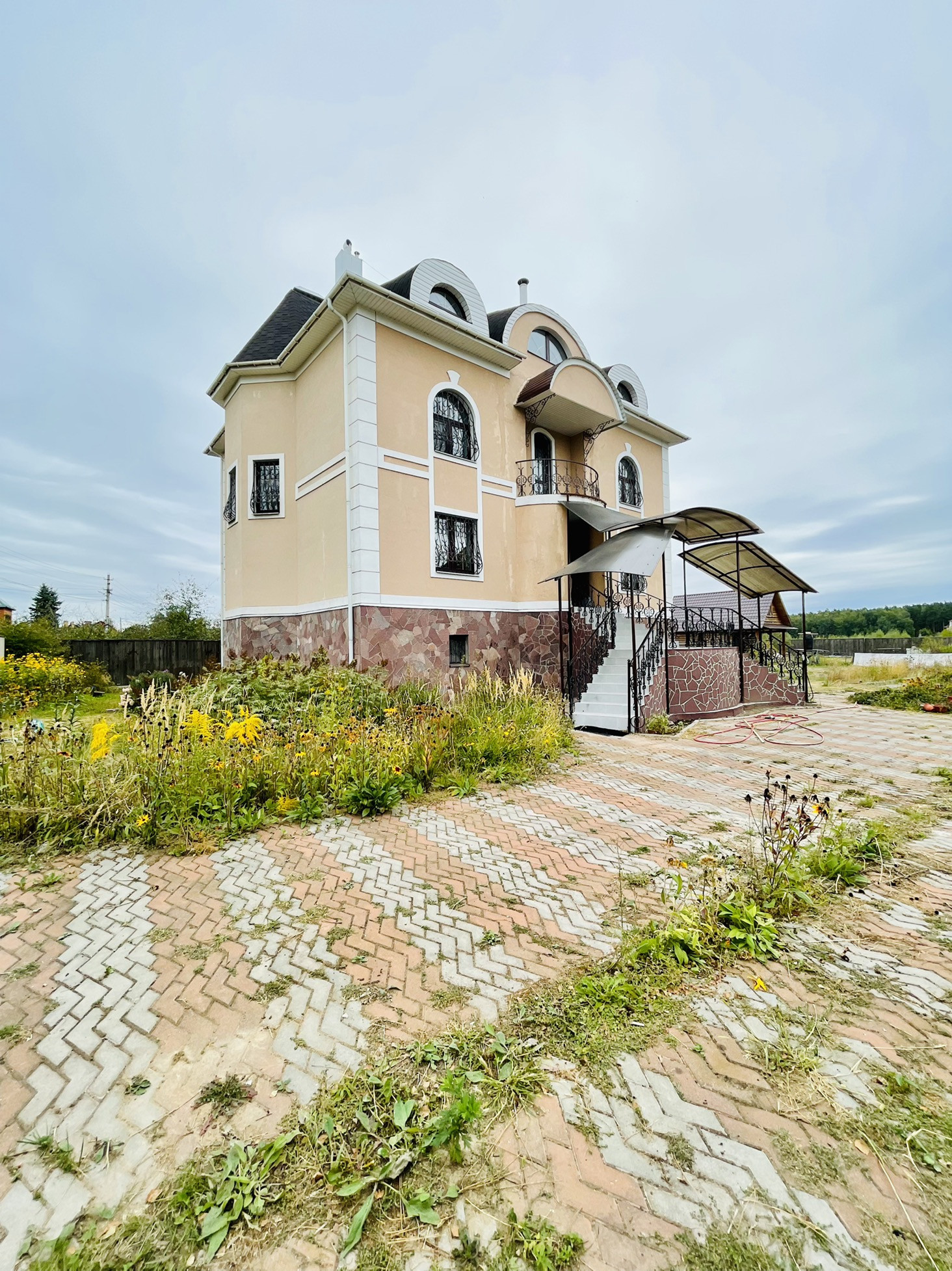 Дом 390 м² кирпичный, оштукатуренный, четырёхуровневый с участком 20 соток.