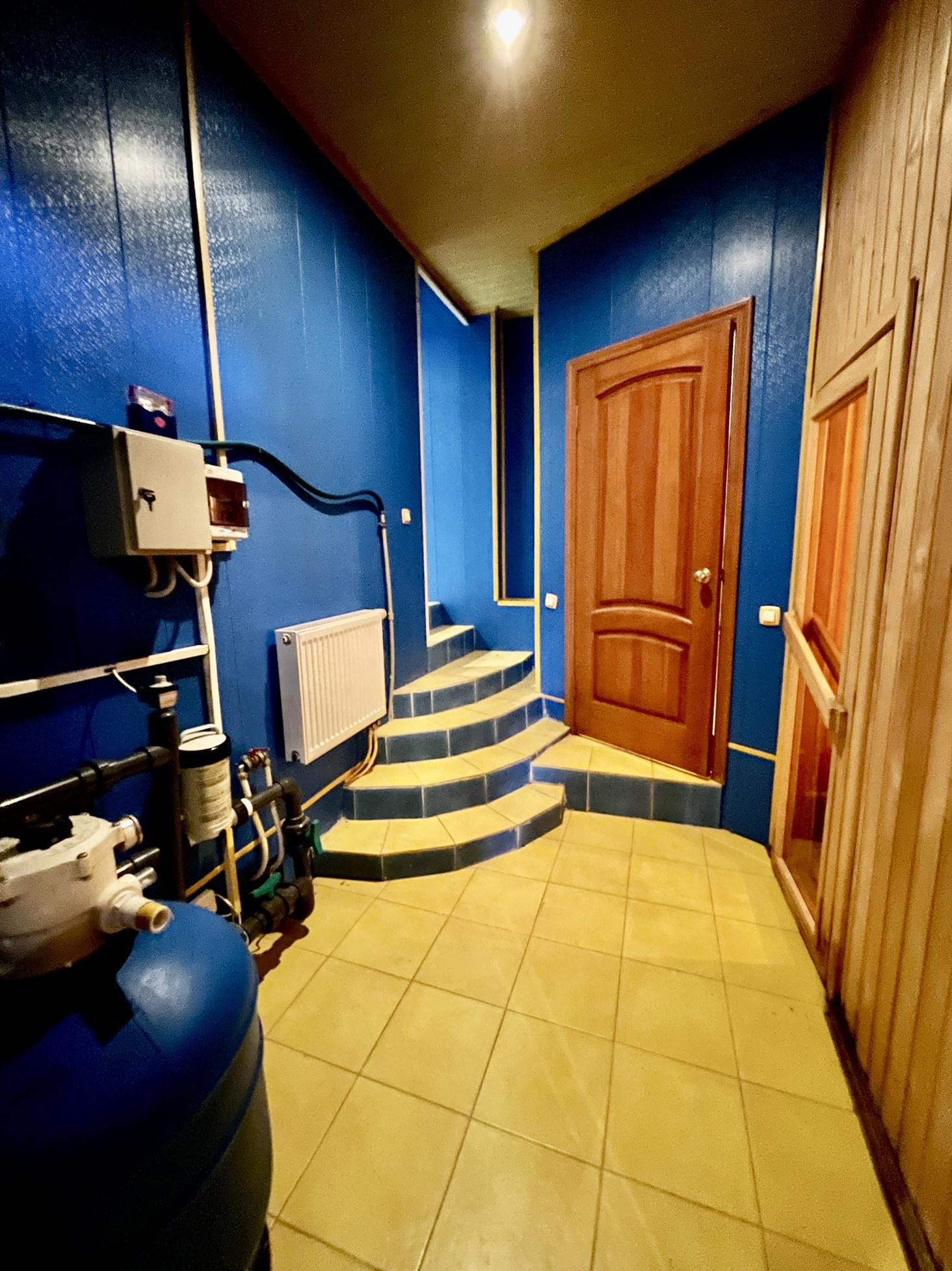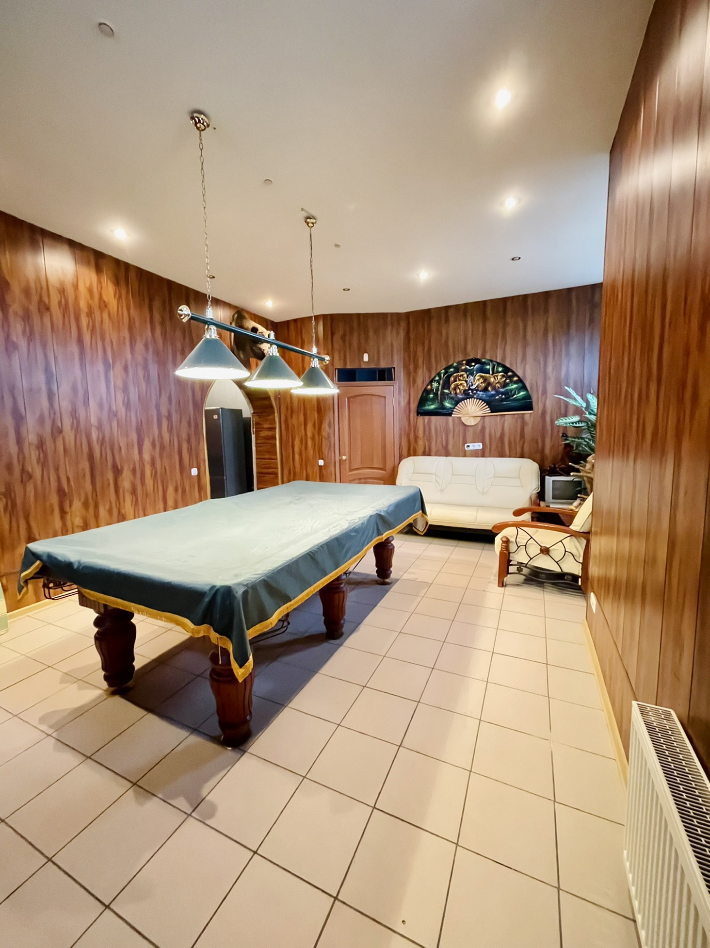 -Цокольный этаж: сауна- 3,7 м², бассейн- 21,5 м², бильярд- 25 м², помещение для продуктов и зимних заготовок- 7,4 м², душевая/санузел- 3,6 м², котельная- 12,2 м², холл свободного назначения- 10,2 и 5,3 м².