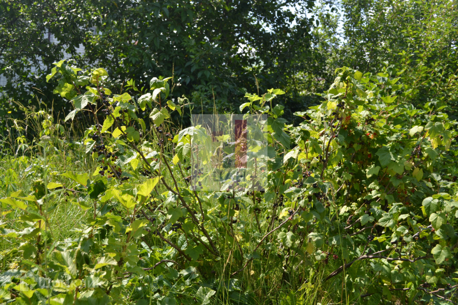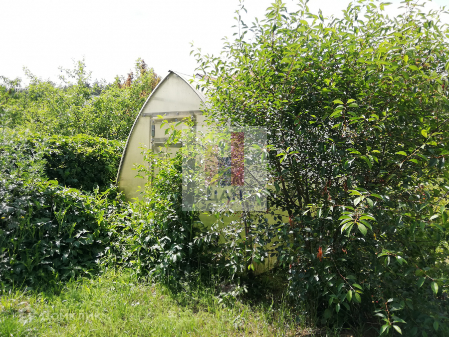 Участок огорожен. Имеется навес для машины. На участке плодовые деревья, кустарники. Есть теплица.