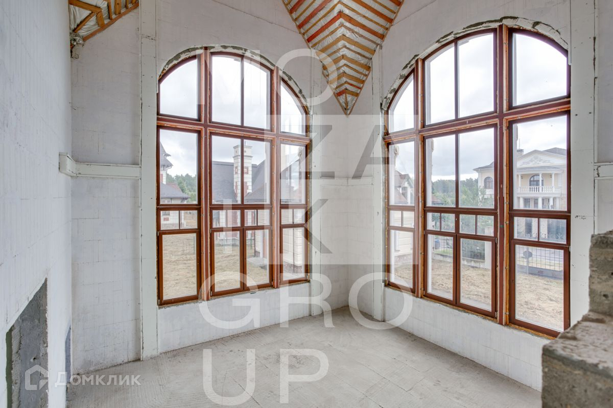 ID 541407. КП Знаменские просторы. Дом 494 кв.м на участке 17 соток в охраняемом коттеджном поселке. Дом в выполнен в классическом стиле с французскими дворцовыми элементами. Гостиная с большими панорамными окнами и вторым светом, просторная антресоль с выходом на балкон.
