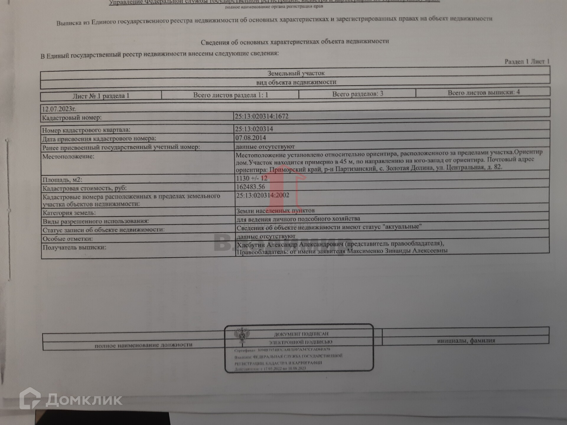 Участок разработан. Категория земель  – земли населённых пунктов
