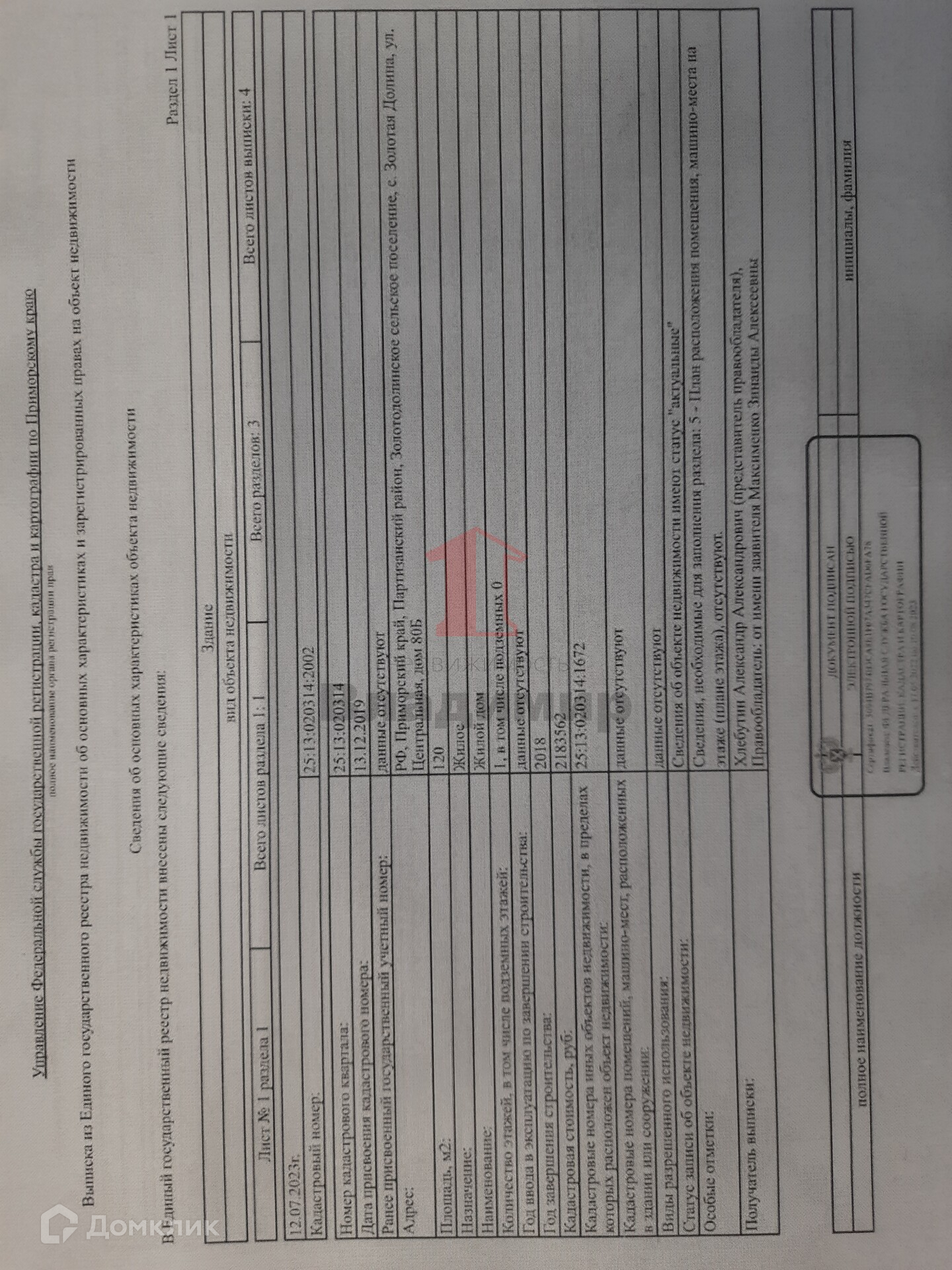 Дом и земельный участок в с. Золотая Долина
