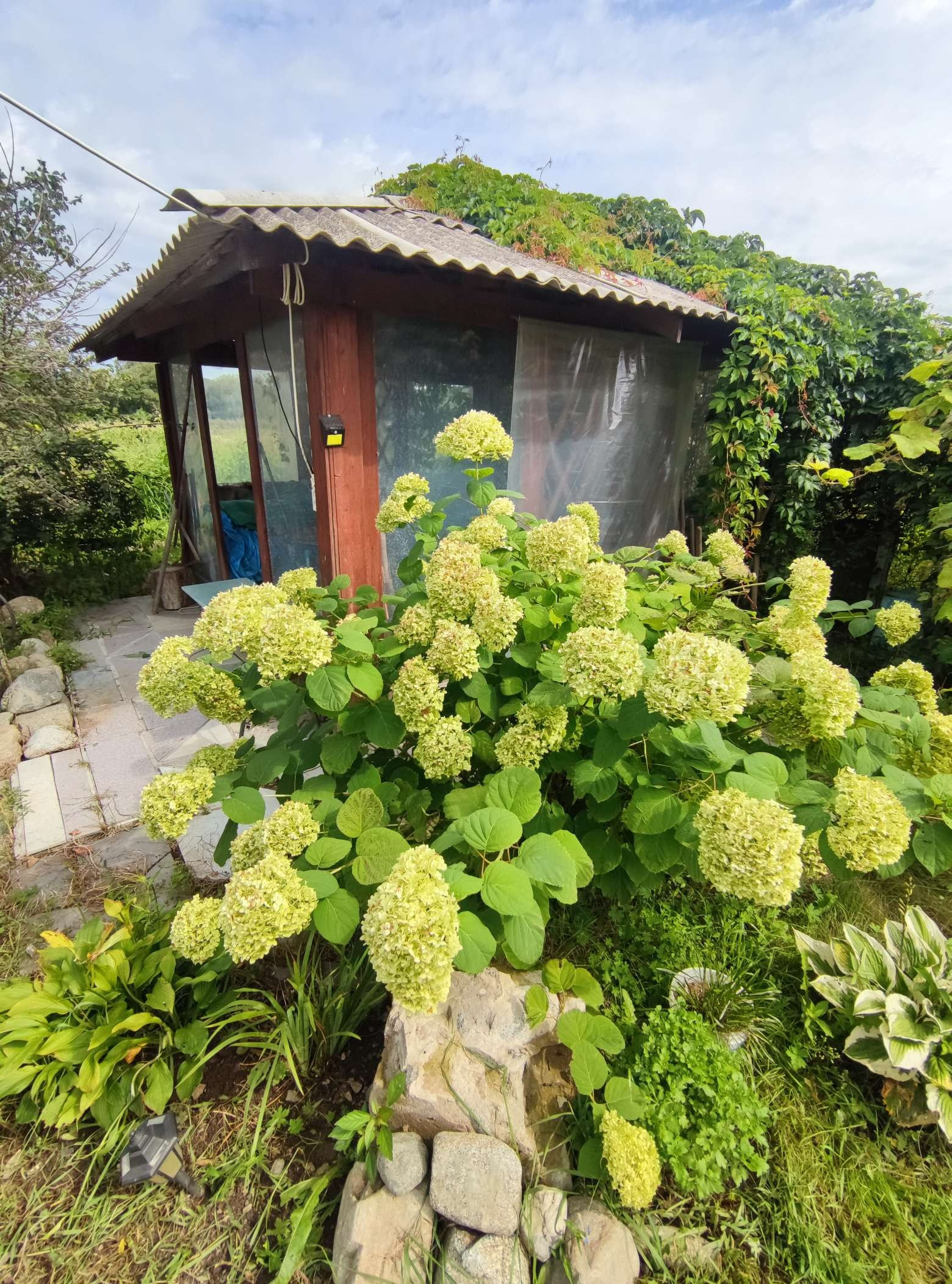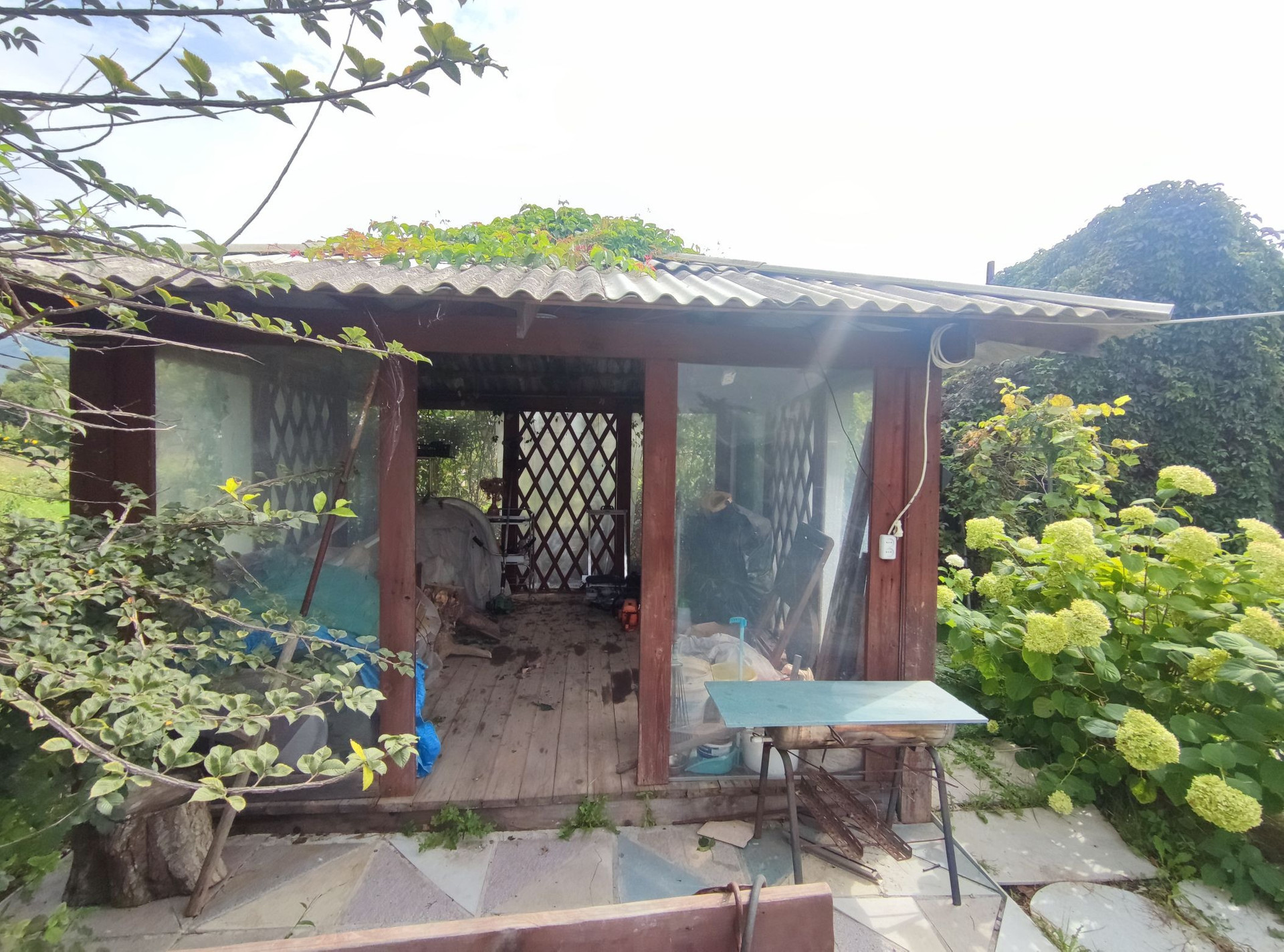 - На территории есть постройки, беседка , строение хоз. назначения, навес для авто .