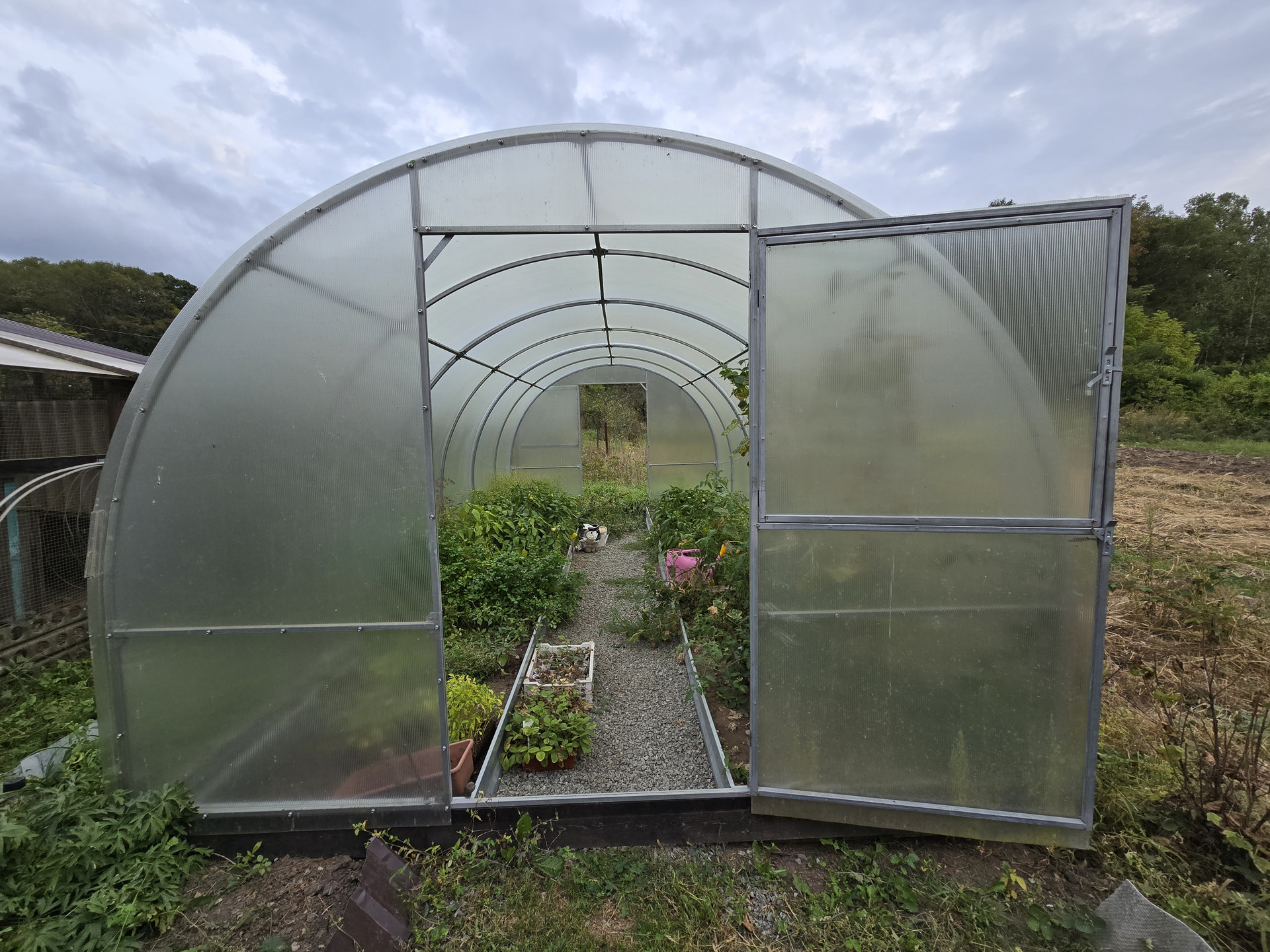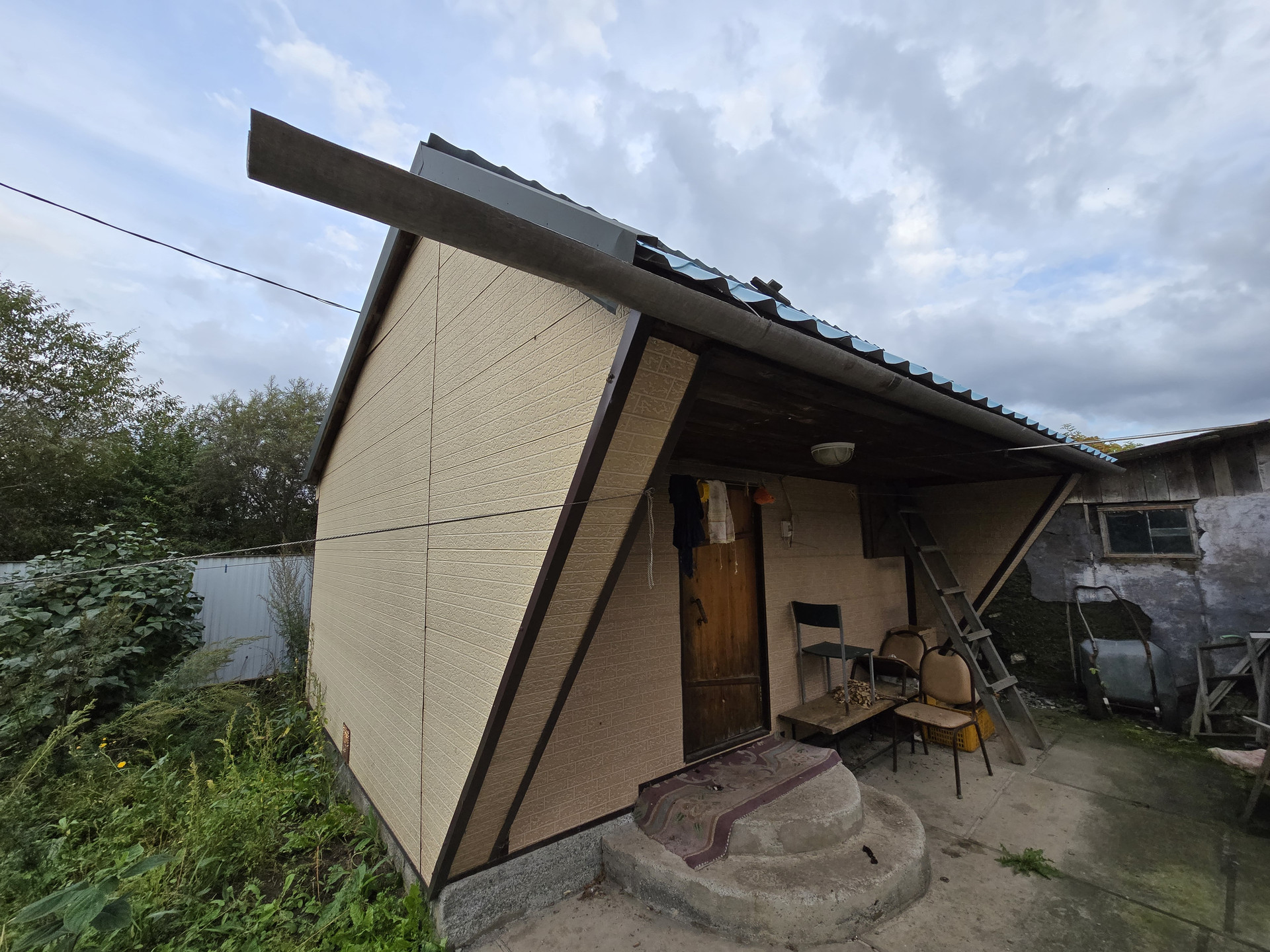 Есть постройки, необходимые для ведения хозяйства, для хранения дров, угля, садового инвентаря, теплица. Два гаража.