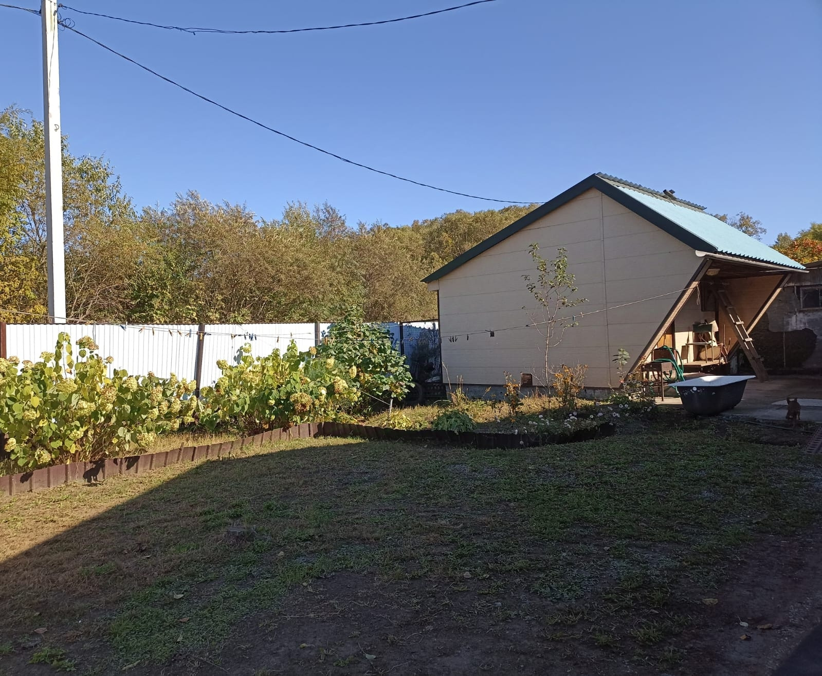 На участке есть плодоносящие садовые деревья и кустарники.