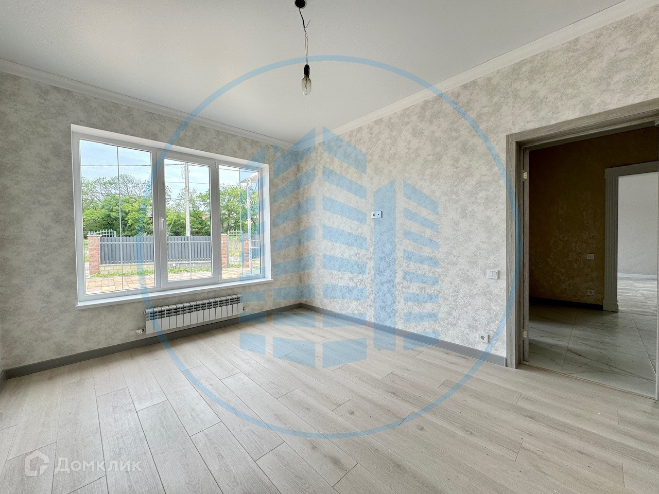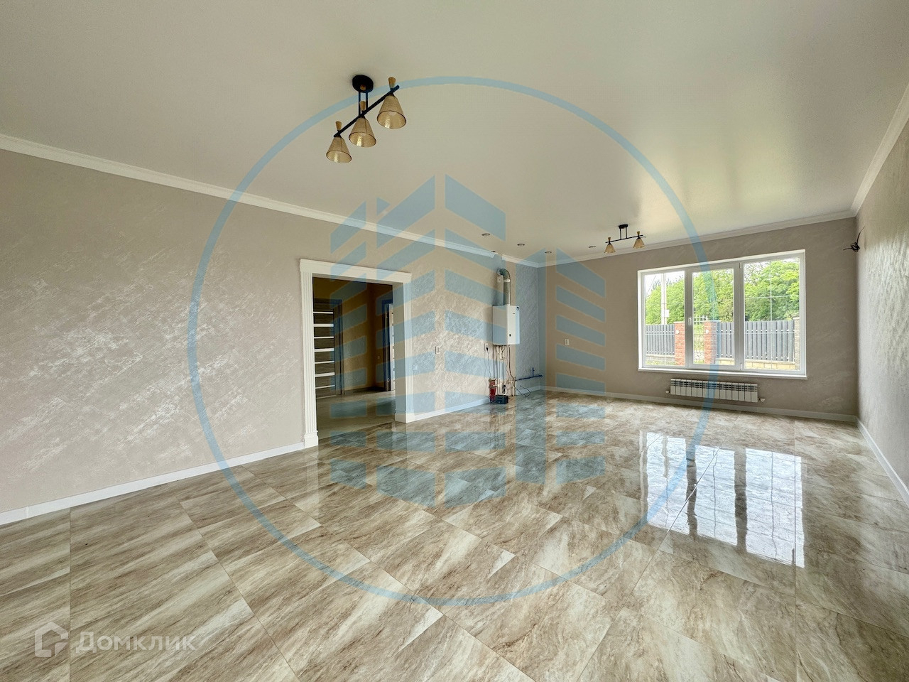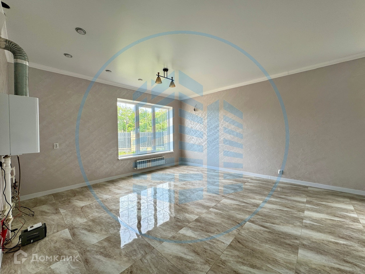 Сделан современный ремонт в светлых тонах: напольное покрытие ламинат и плитка, натяжные потолки, обои и межкомнатные двери, теплые полы. Установлен газовый двухконтурный котел и радиаторы.