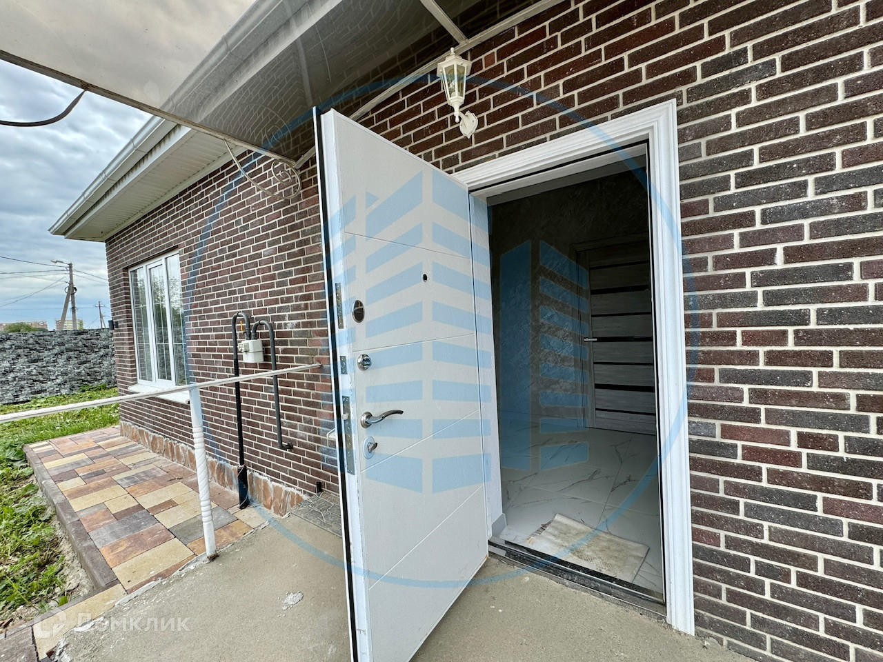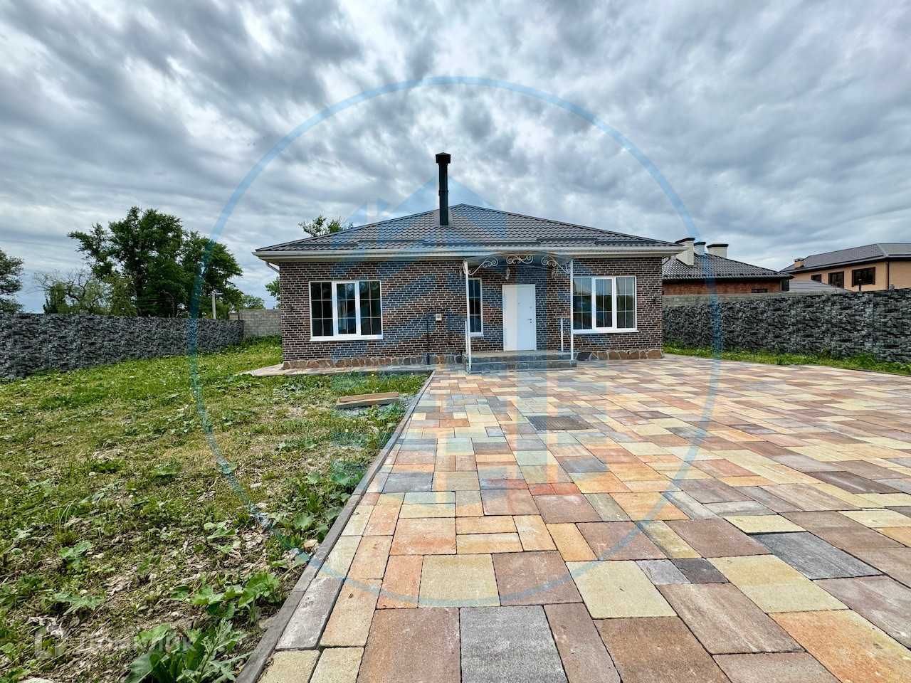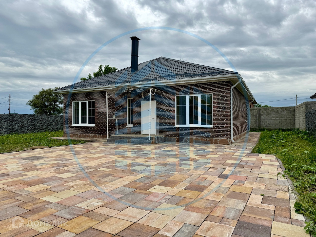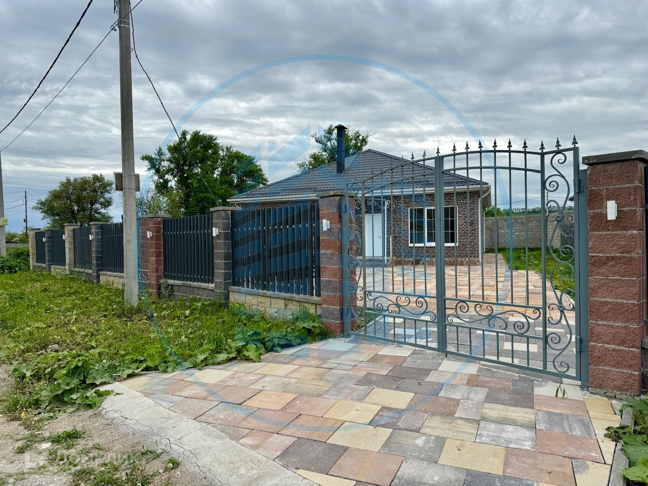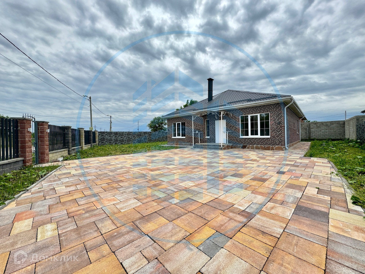 Двор вымощен тротуарной плиткой, установлен забор, ворота, калитка.