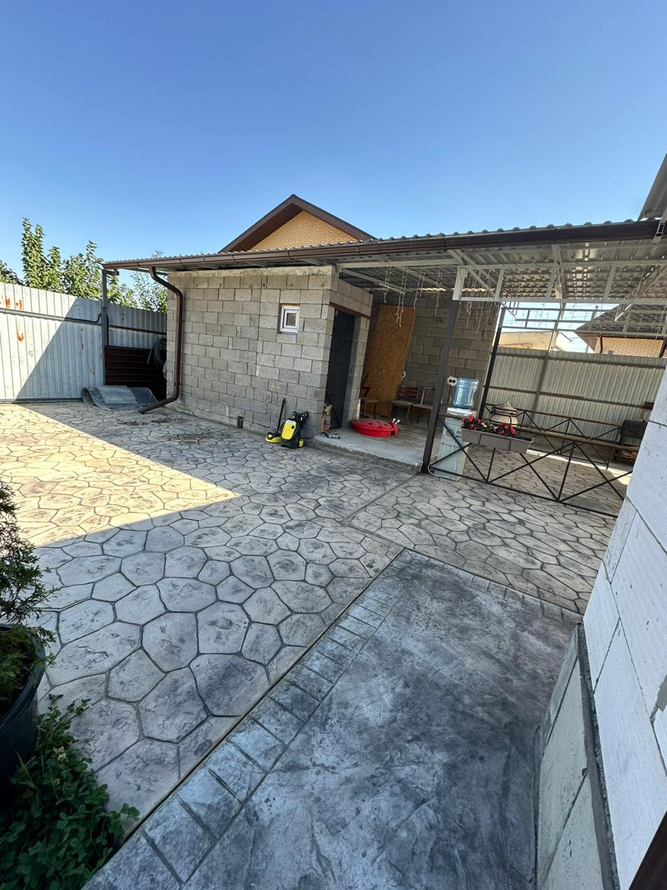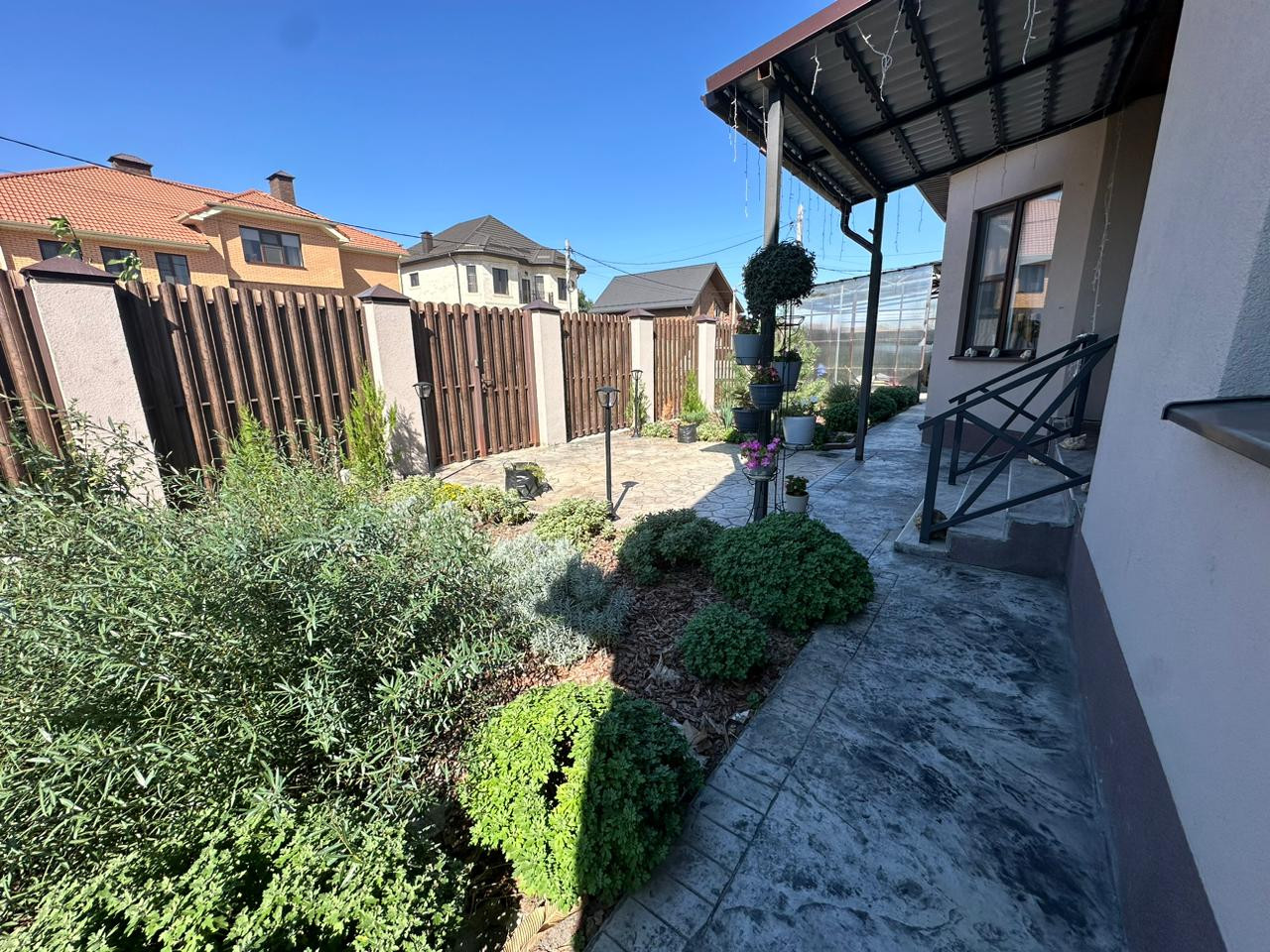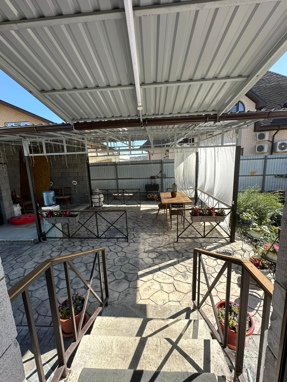 на задней части участка есть летняя кухня,веранда,туалет и баня.