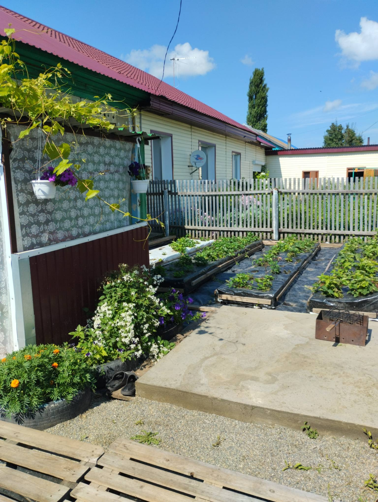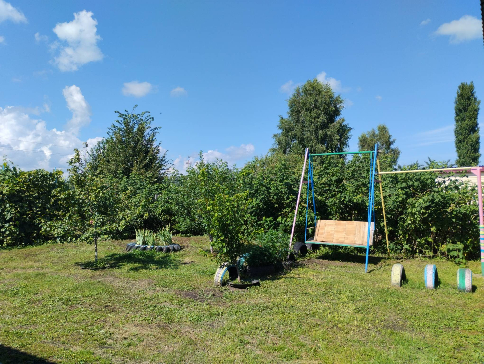Огород и территория ухоженны, произрастают плодово-ягодные растения :слива, яблоня, вишня, смородина, виноград, крыжовник, виктория .