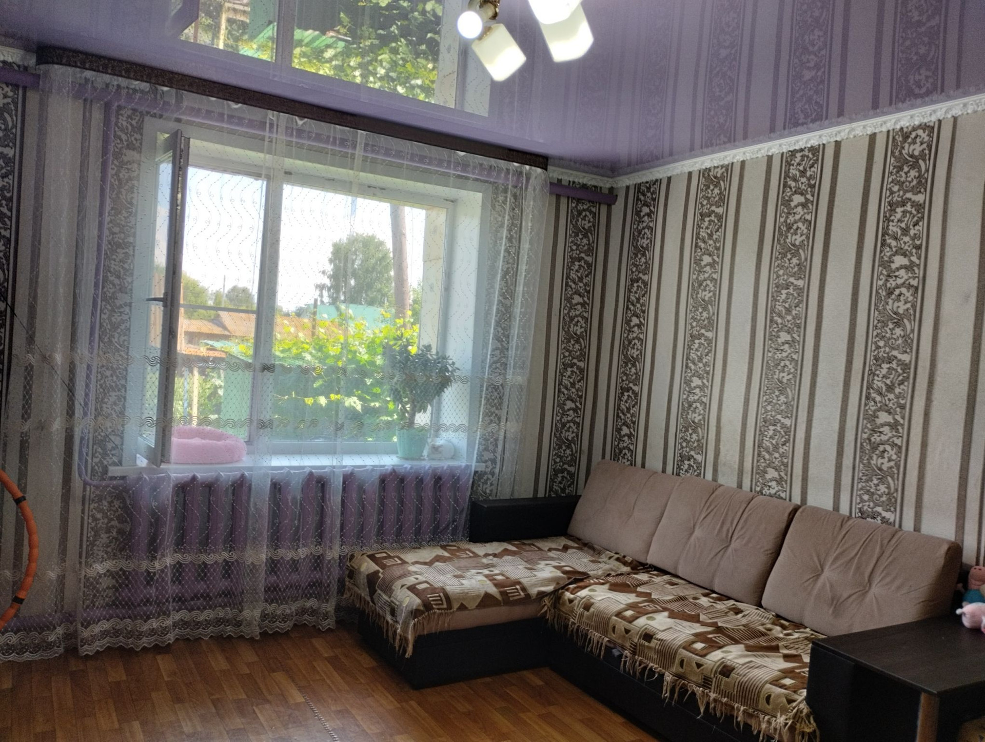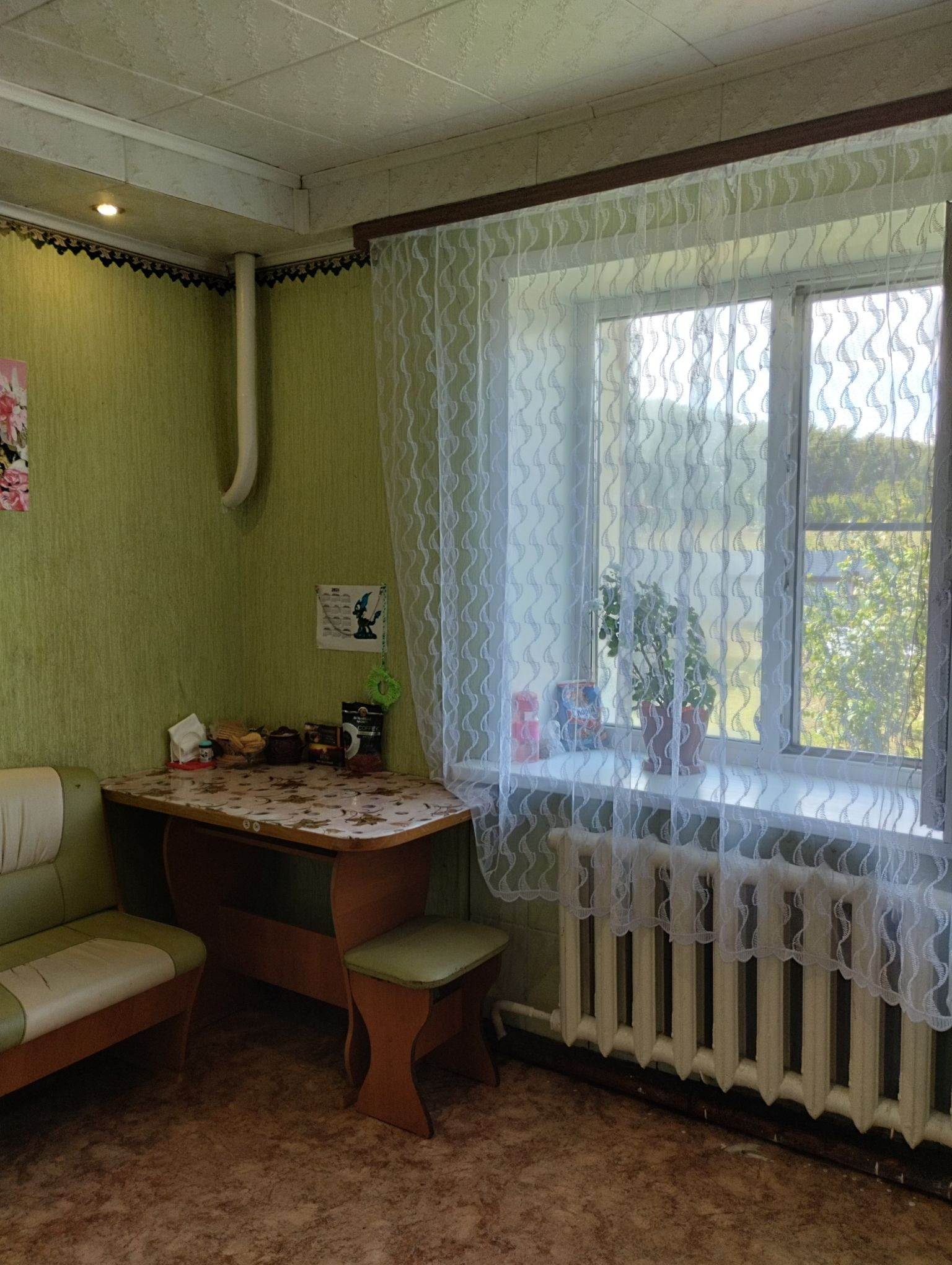 Установлены пластиковые окна . Большой семье -просторная квартира со стильной планировкой :4 комнаты, кухня -10 кв. м, санузел в кафеле, установлена душевая кабина, удобный коридор, отдельно кочегарка.