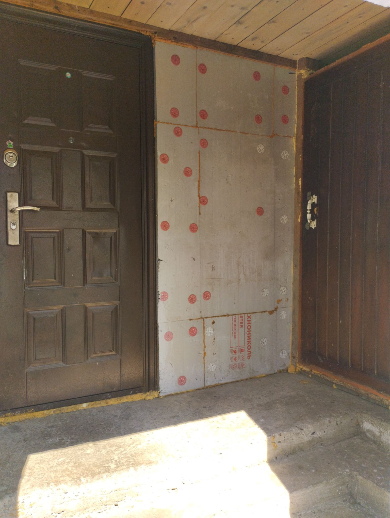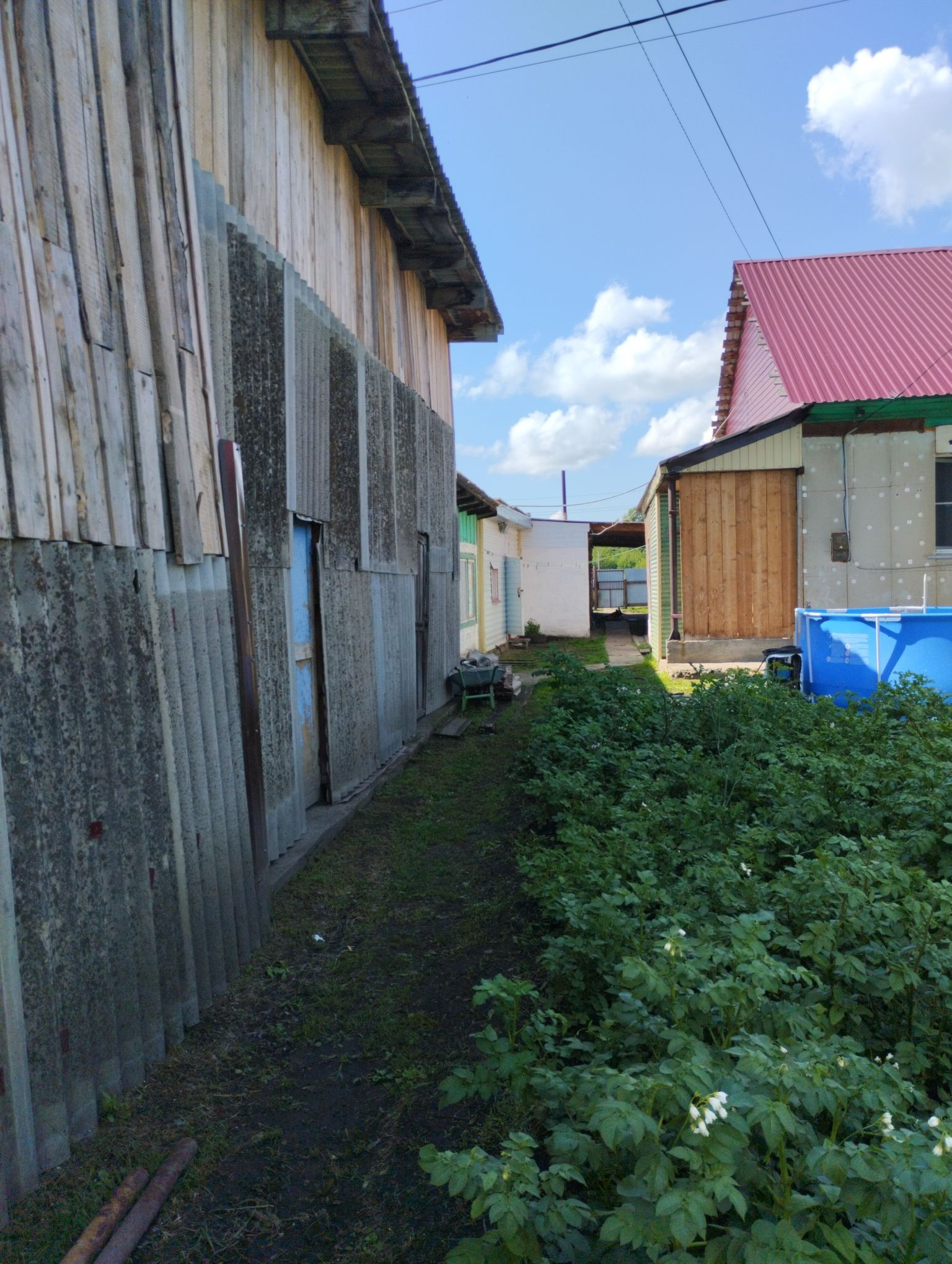 Часть придомовой территории закрыта навесом .