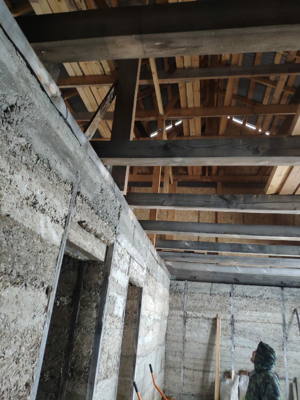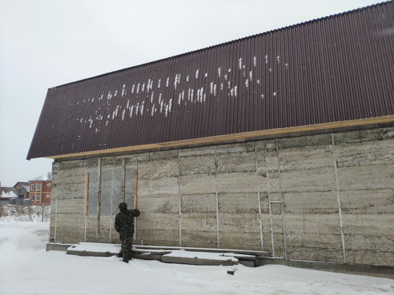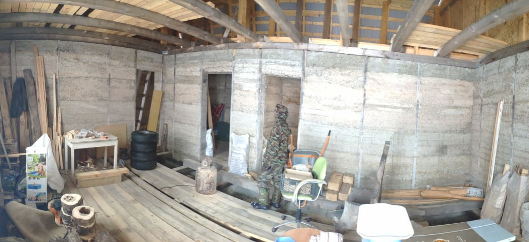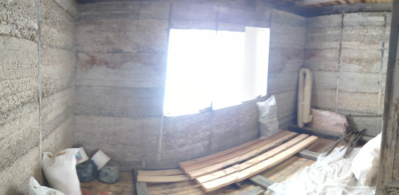 - 2 этажный дом 11*8м (176 м.кв.), ленточный фундамент, материал стен – арболит (очень теплый материал), толщина стен – 35 см., готовая кровля (металлопрофиль). Дом подходит для круглогодичного проживания. Состав комнат 1 этажа: гостиная (40 м.кв.), кухня (24 м.кв), ванная комната (9 м.кв.), кательная + постирочная (20 м.кв.), 2 этаж – свободная планировка.