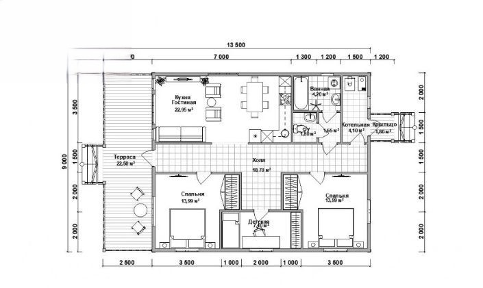 Дом из профилированного бруса 9х13,5 с терасой