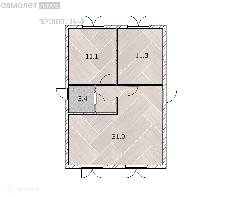 Общая площадь 57.7 м2