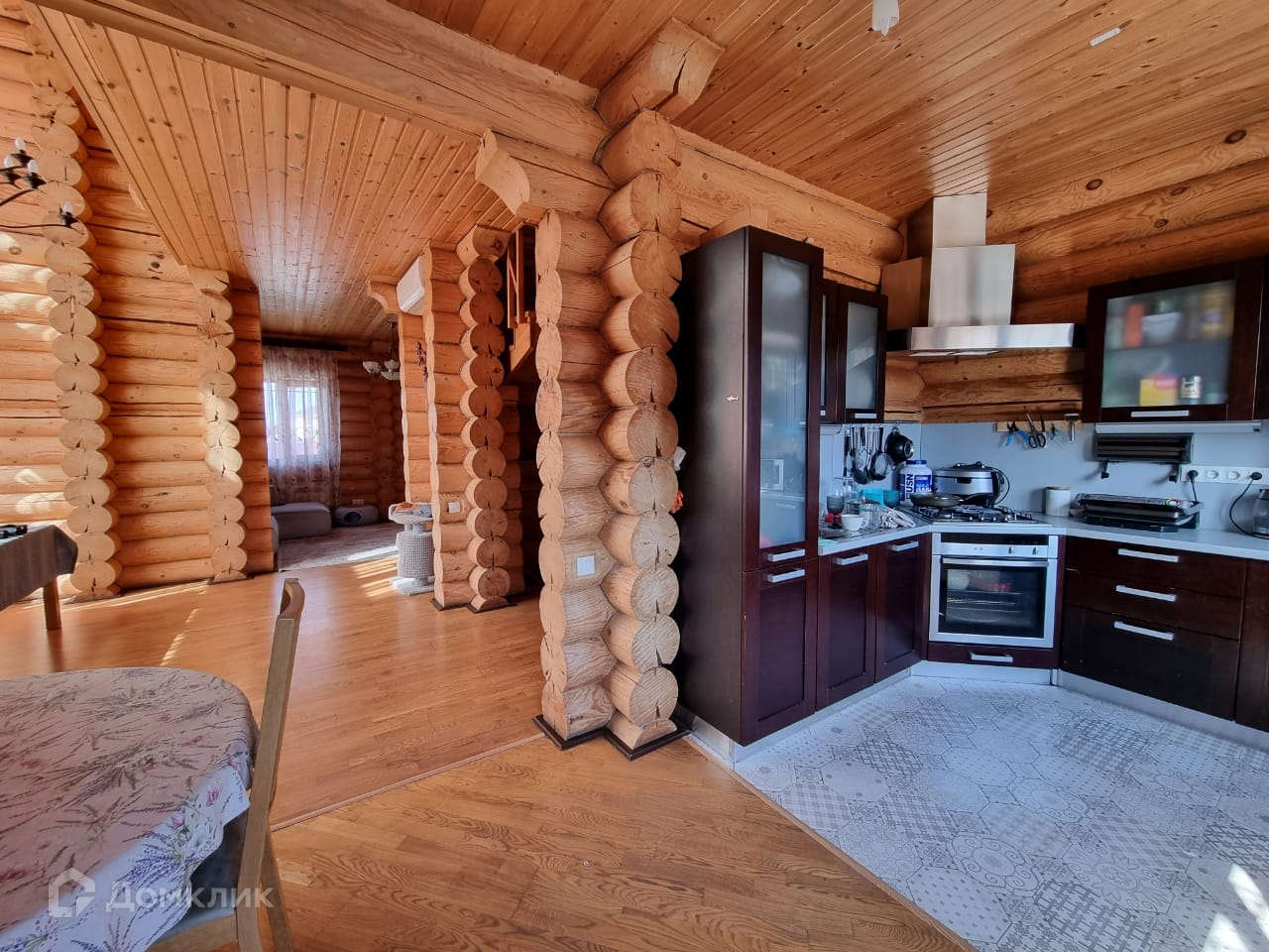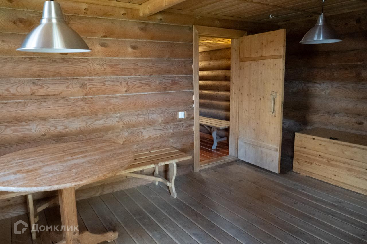 Двухэтажный дом из оцилиндрованного бревна.