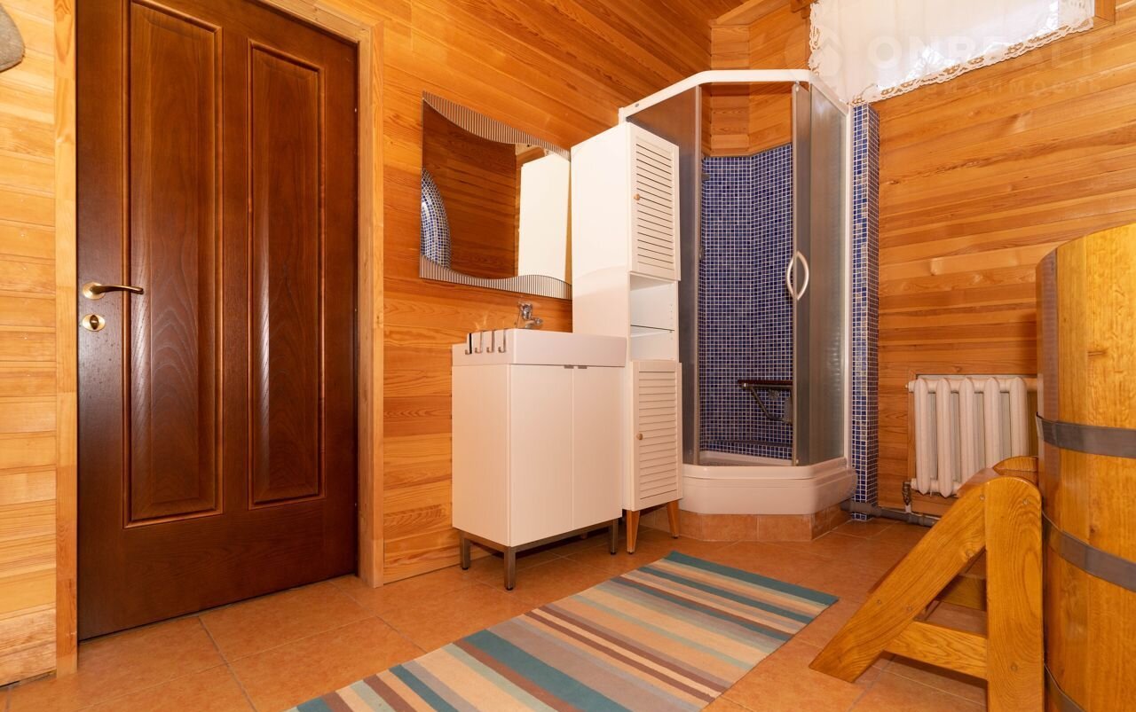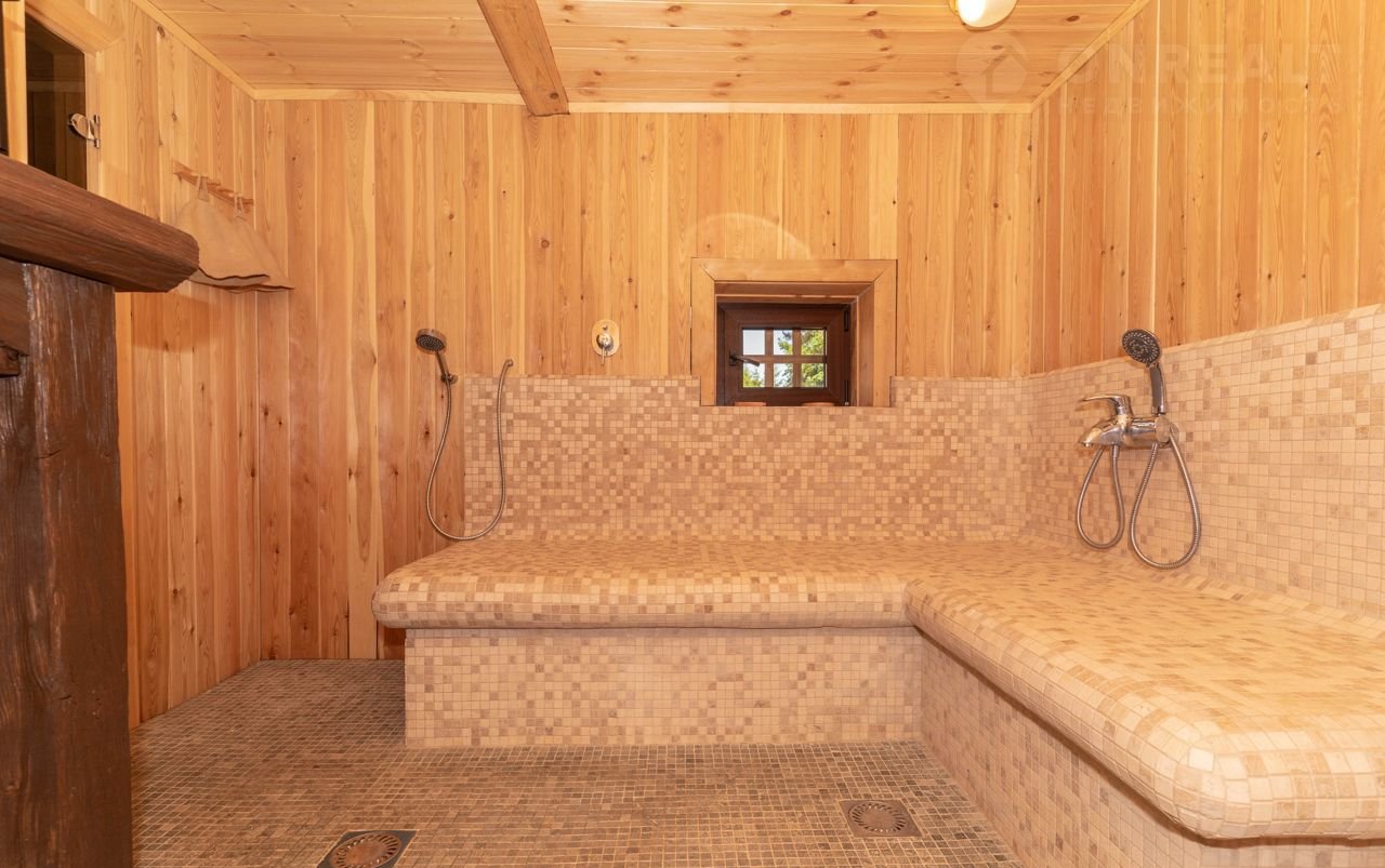 Цокольный этаж: Просторное помещение 63 м2 свободного назначения (возможно разместить бильярдный стол и спортивные тренажеры ) финская сауна с купелью, санузел с душевой, подсобные помещения для хранения, котельная. Высота потолка 3,5 метра.