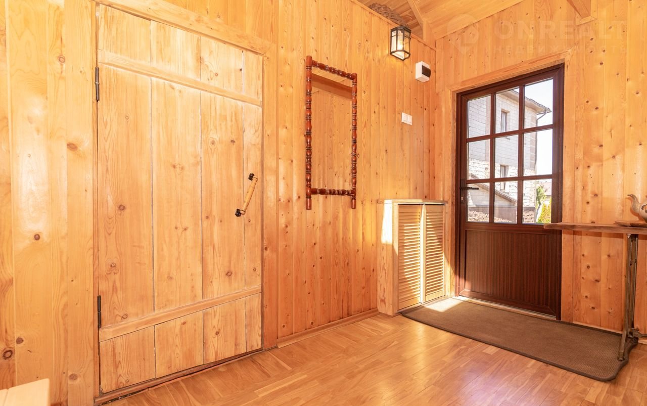 Коммуникации: При проектировании особое внимание уделено инженерной инфраструктуре. Дом подключён к центральным коммуникациям. Поступающие в дом вода, проходит через многоуровневую систему очистки и подается в кран уже питьевой. В доме автономная система отопления и тёплые полы по всему периметру. Система отопления и горячей воды – напольный газовый котёл и бойлер на 200 л. Подогрев Пола водяной.