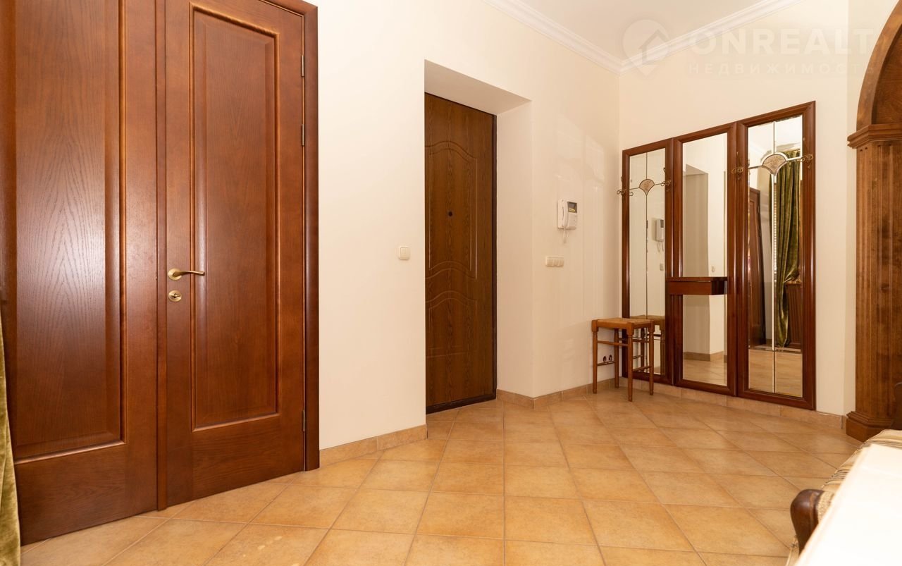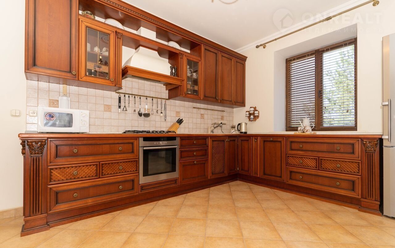 Второй этаж: Холл, три спальни, санузел. Высота потолка 3 м. Выполнен качественный ремонт в классическом стиле. Элементы декора, сантехника, смесители, бытовая кухонная техника от европейских производителей. Полы– дубовый штучный паркет и керамическая плитка (Италия). Стены покрашены моющейся финской краской Тиккурила.