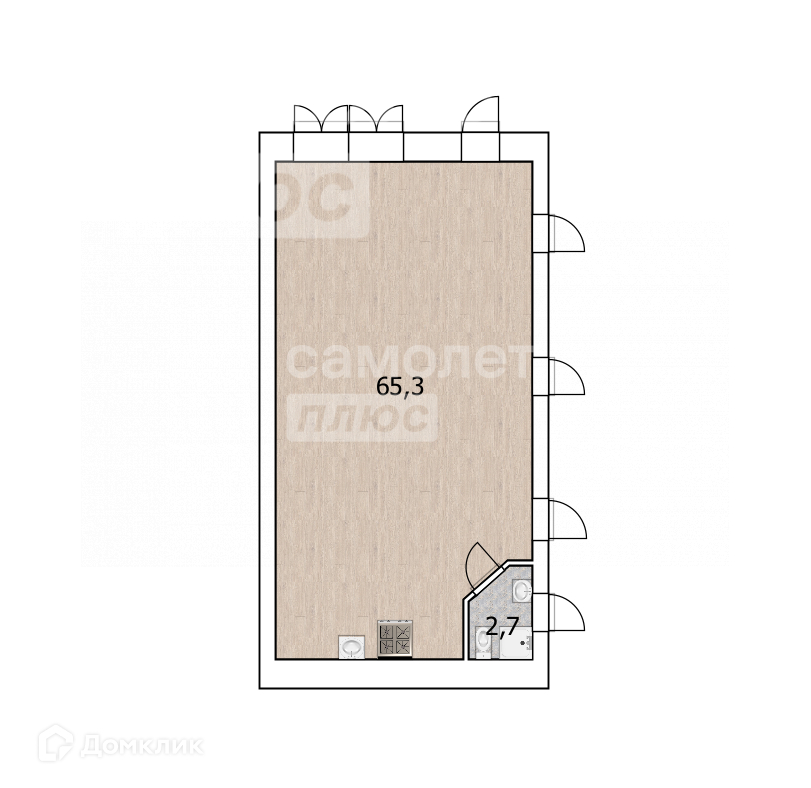 Высота потолков 2.8 м