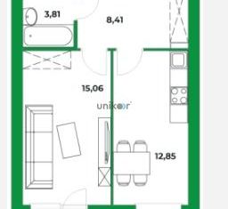Общая площадь: 41.5 м2