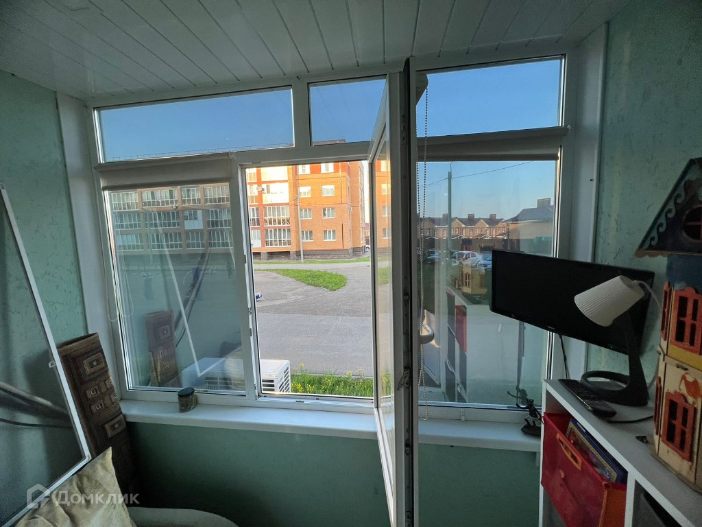 Из комнаты-выход на просторную лоджию. Она застеклена.