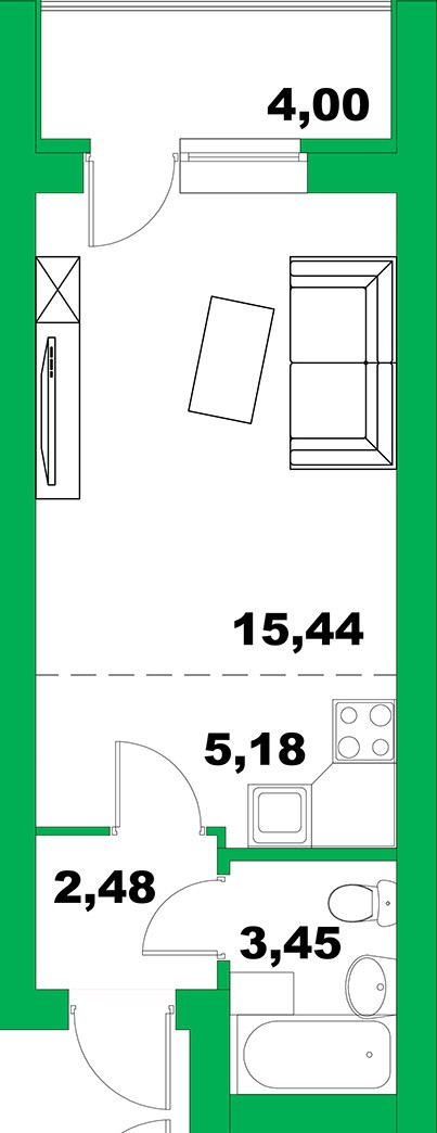 Общая площадь 25.9 м2