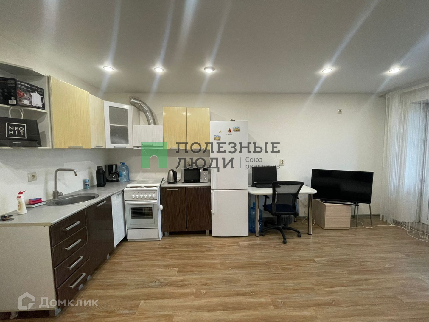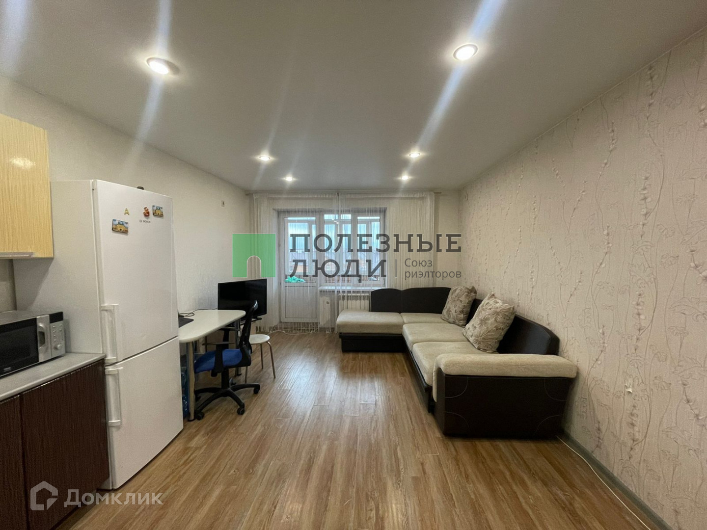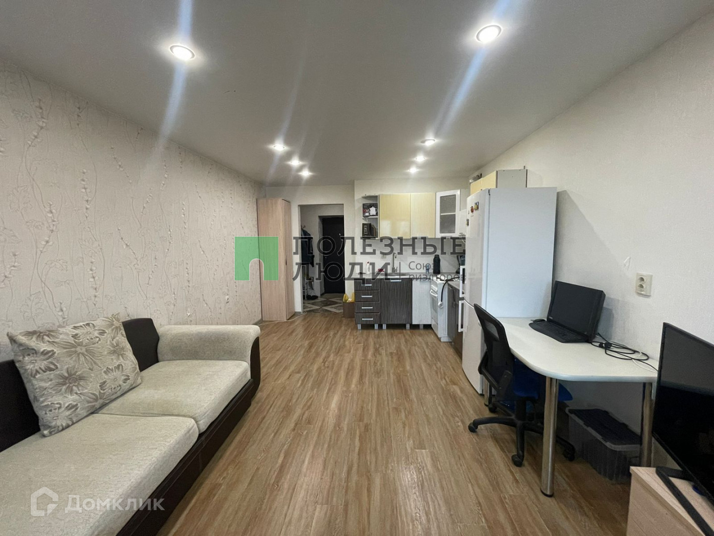 Остается встроенный кухонный гарнитур и диван
