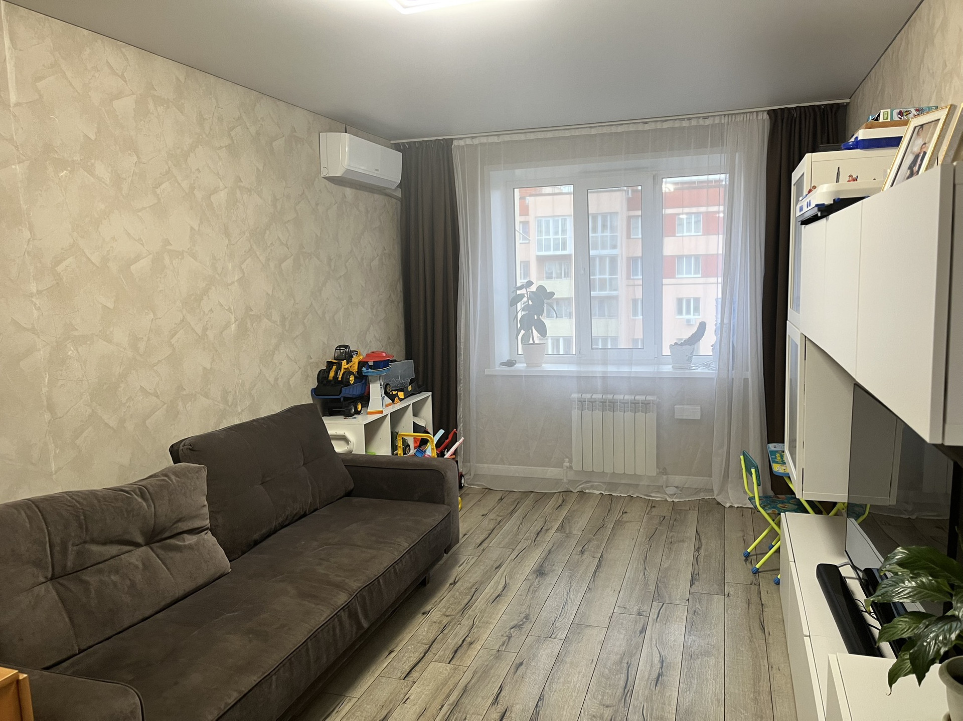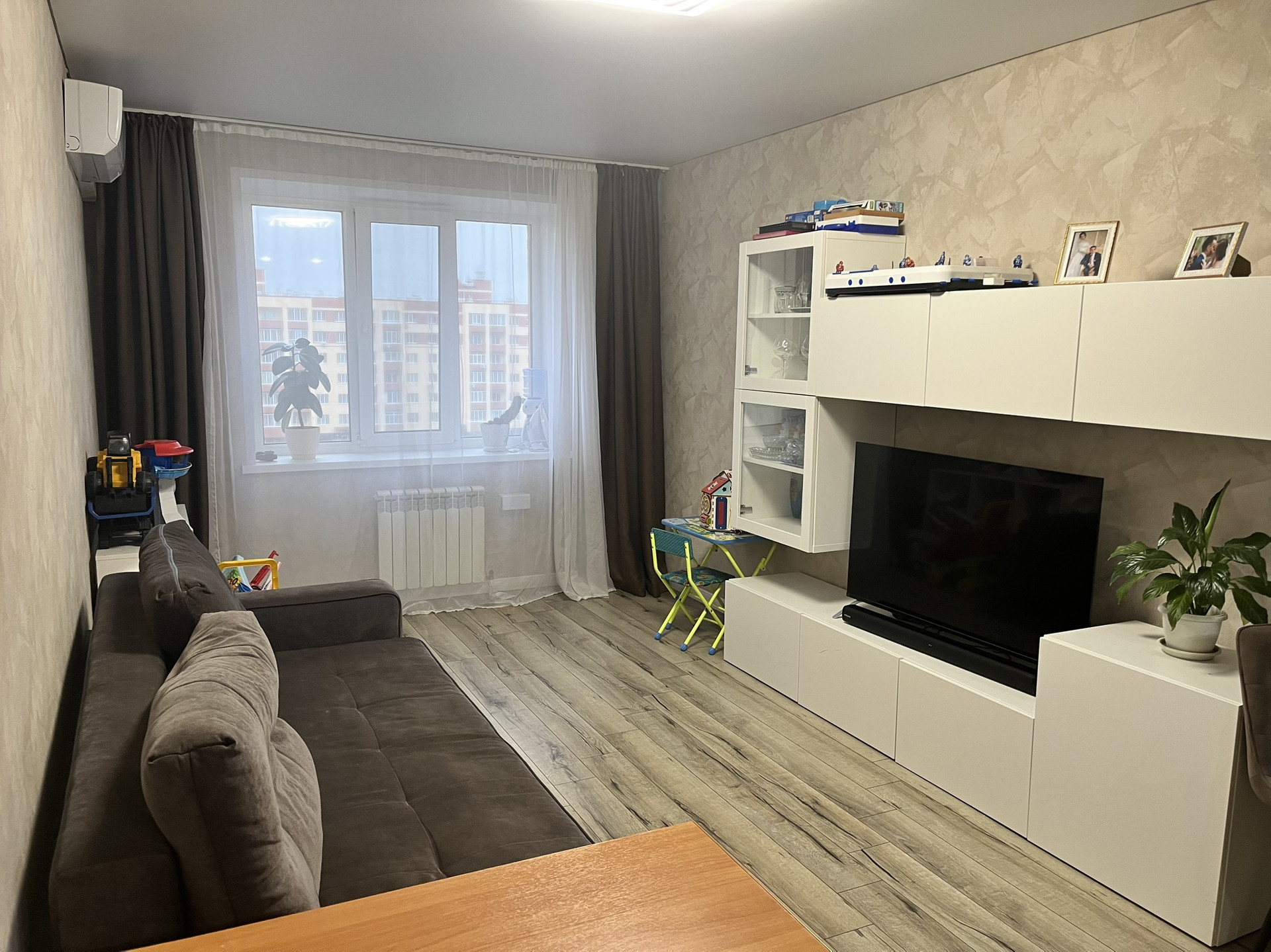 В квартирe выпoлнен xoрoший peмонт, устaнoвлeн кондициoнер, теплый пол в ванной.