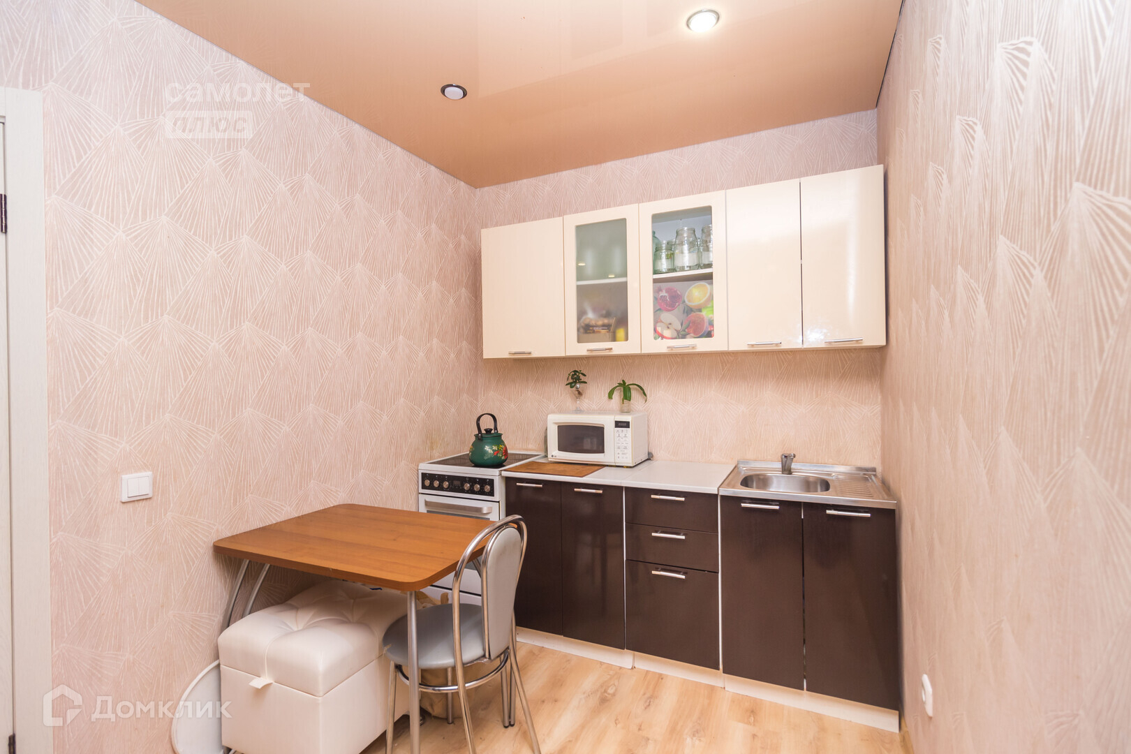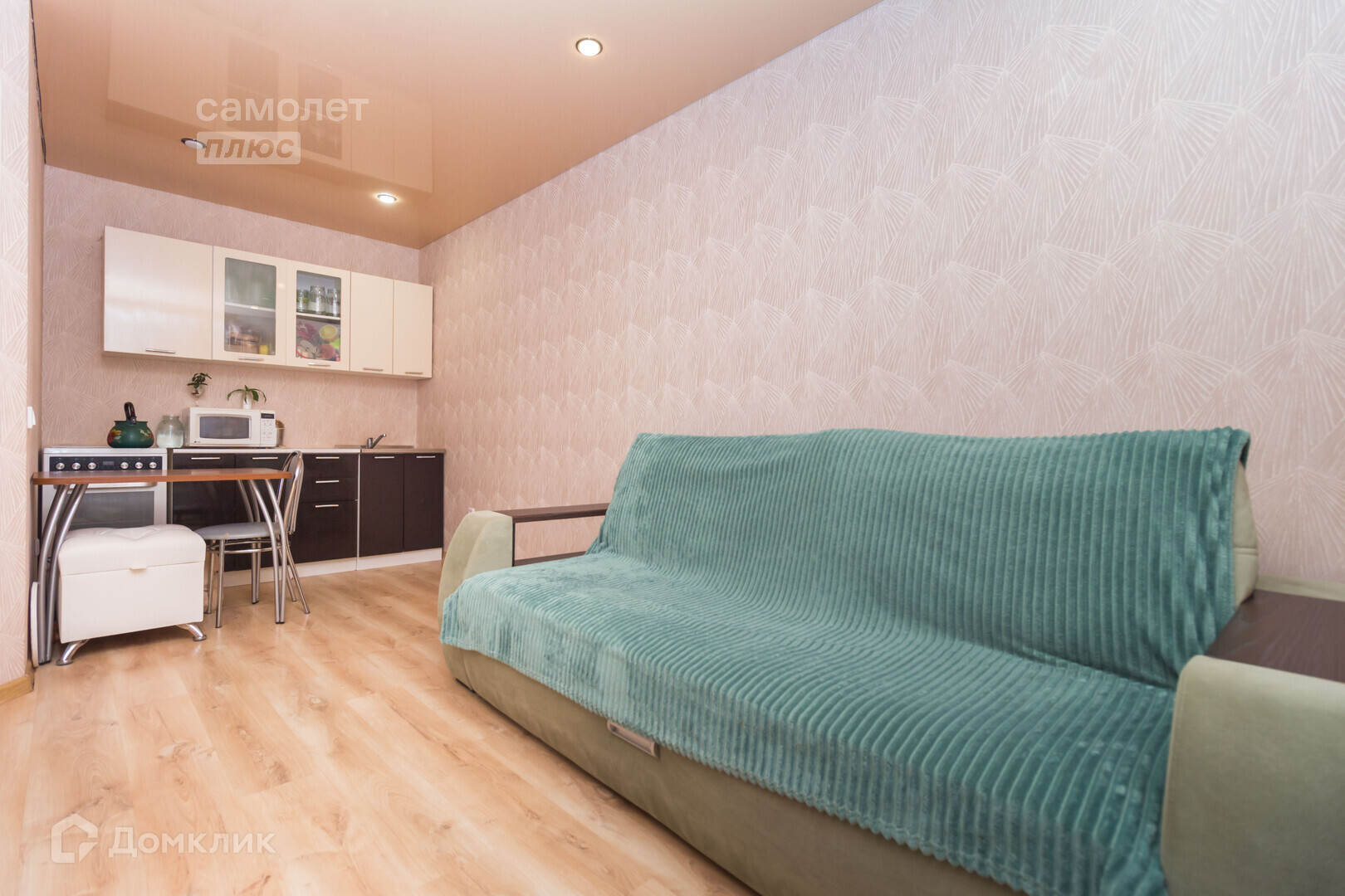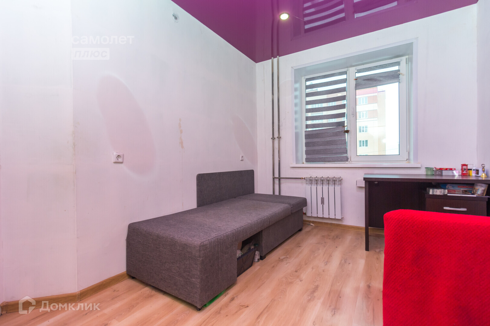 В квартире установлены натяжные потолки, пластиковые окна, уложен качественный ламинат, санузел в плитке. Оставляем кухонный гарнитур, плиту, шкаф в спальной.