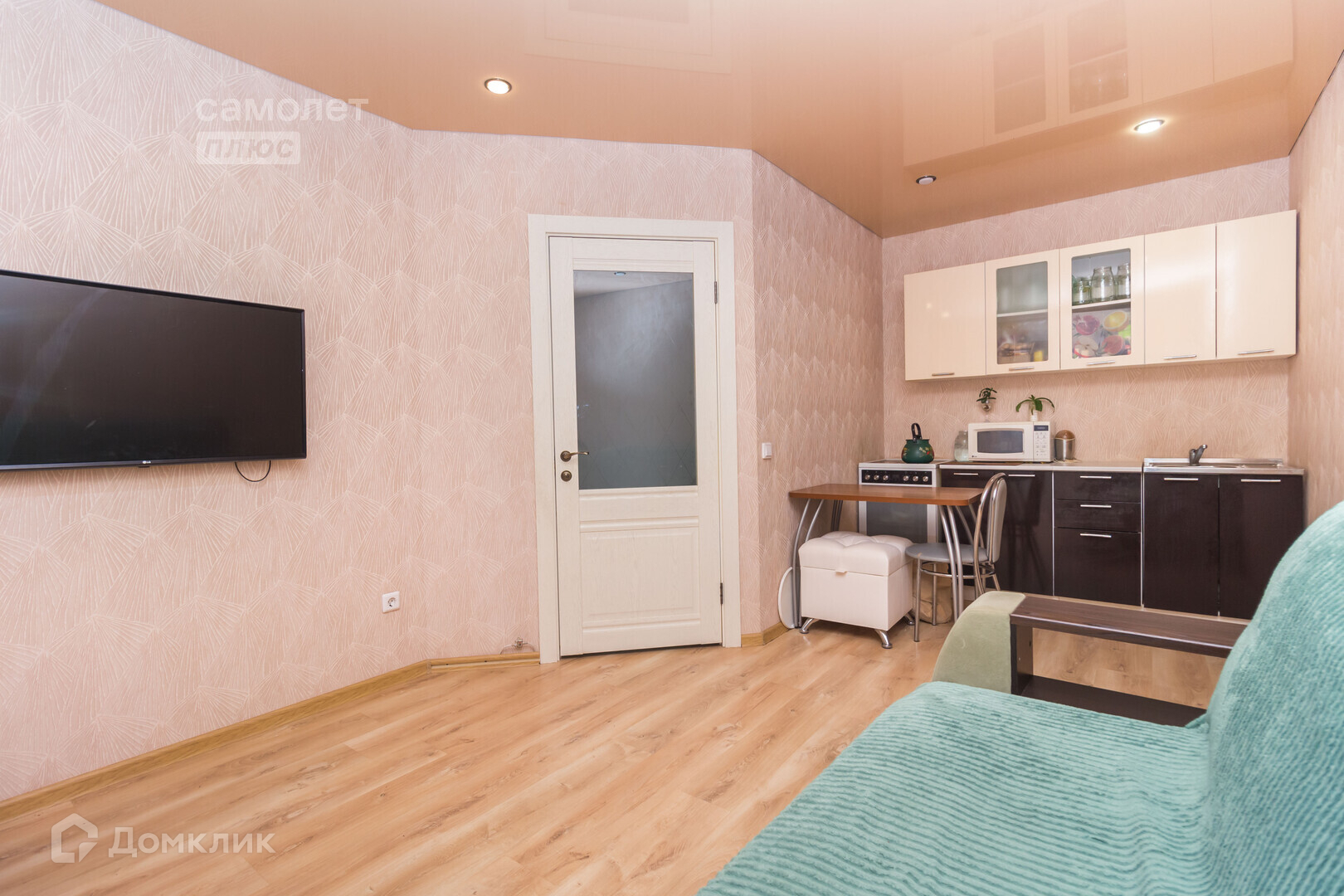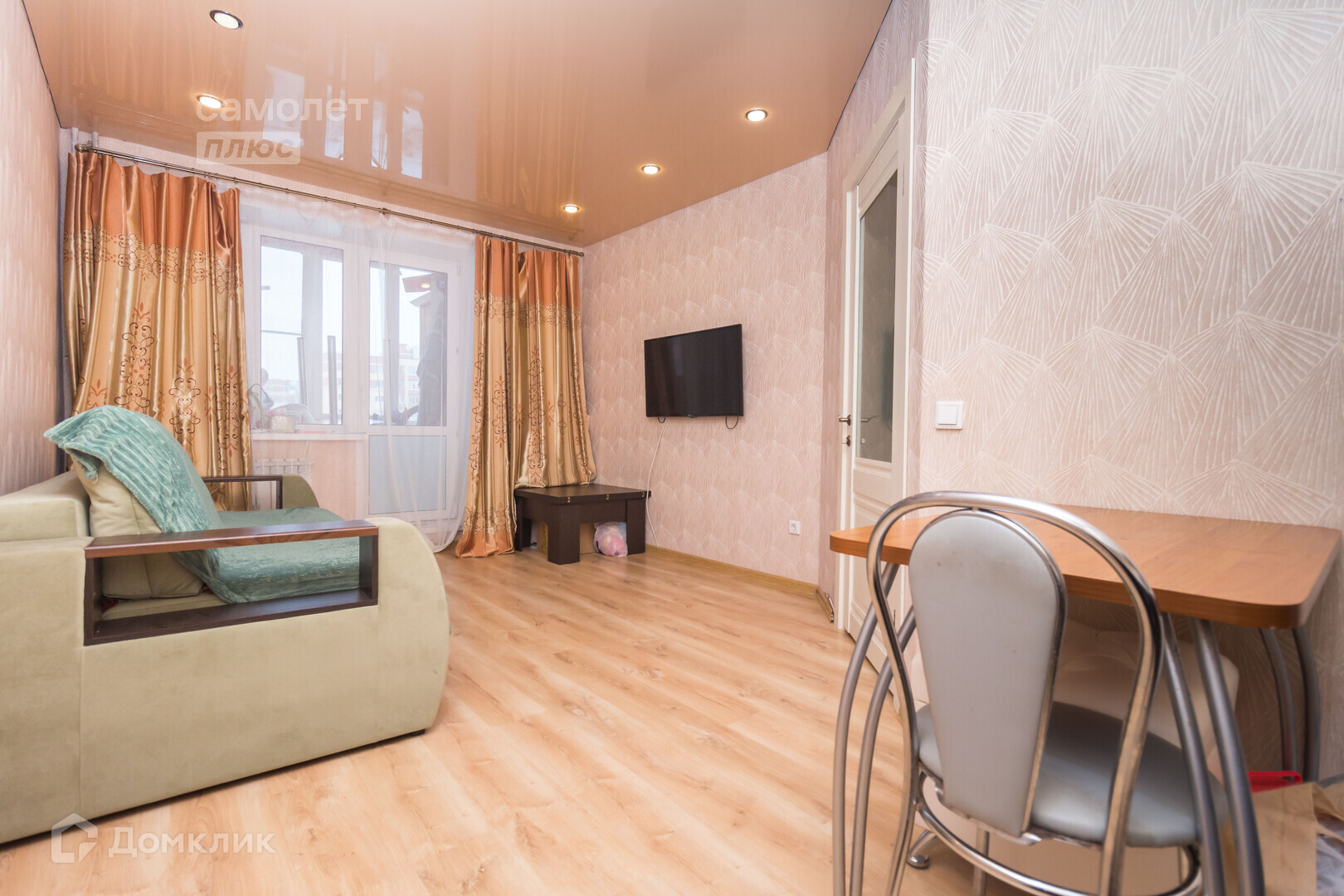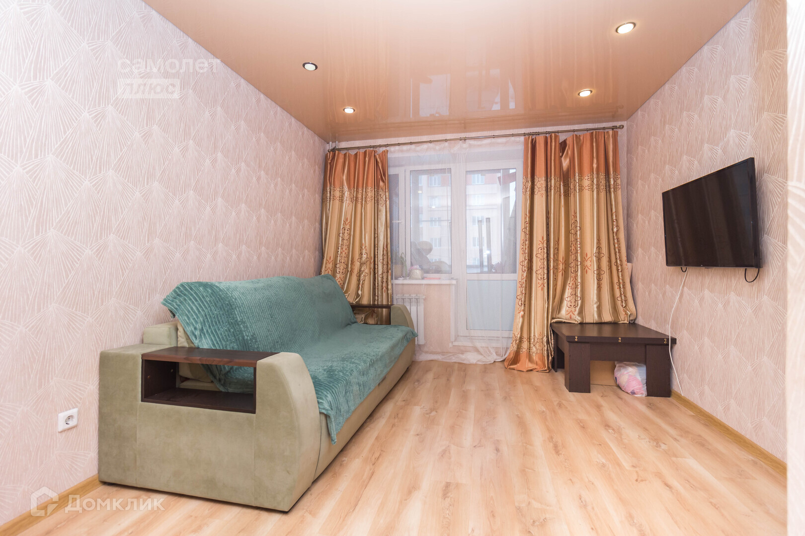 В квартире установлены натяжные потолки, пластиковые окна, уложен качественный ламинат, санузел в плитке. Оставляем кухонный гарнитур, плиту, шкаф в спальной.