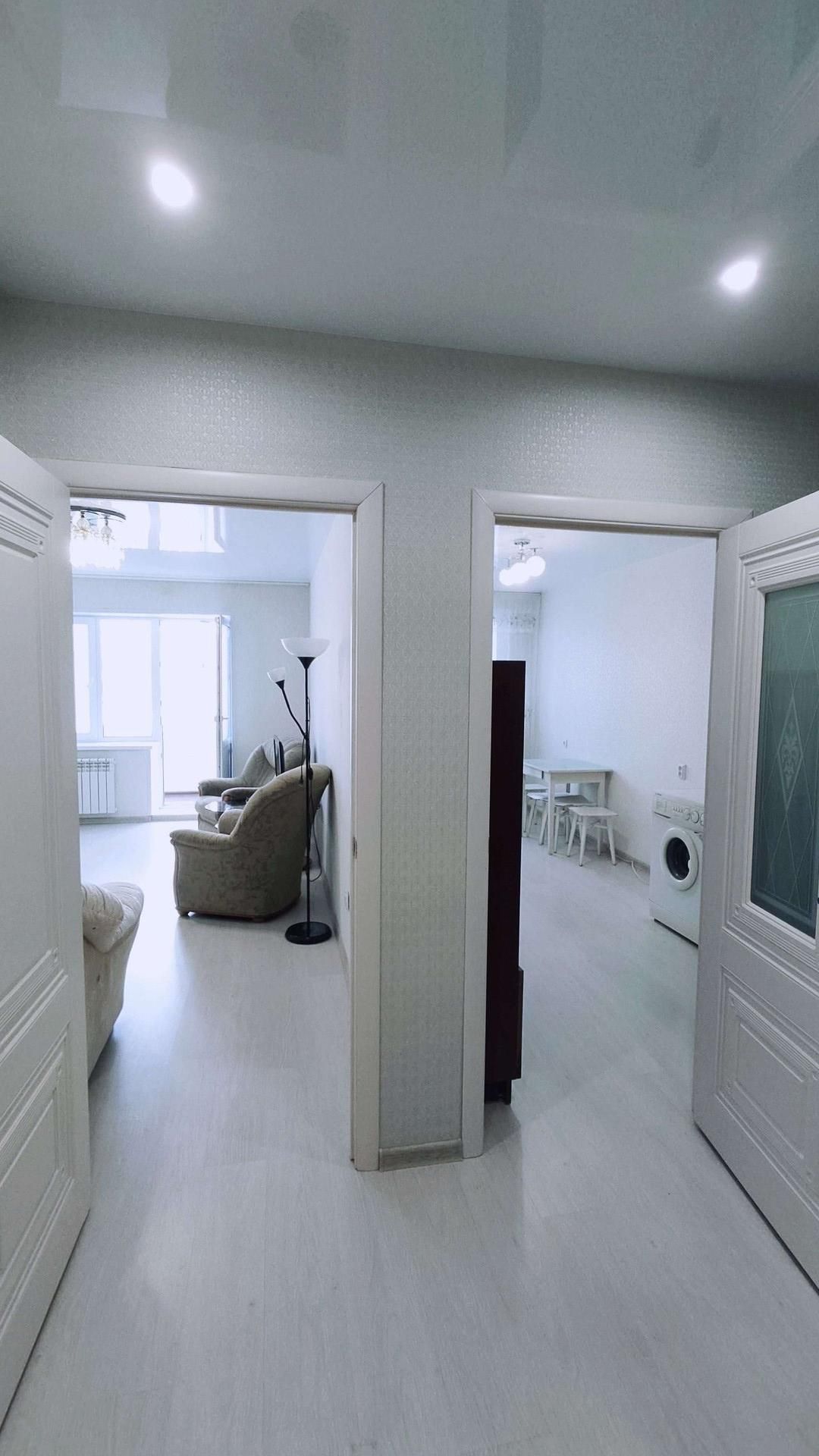 Квартира очень теплая!!! Лучевая разводка отопления в стяжке пола обеспечивает подогрев в отопительный сезон. Сделан современный ремонт с использованием качественных материалов. Напольное покрытие - ламинат, натяжные потолки, стены -обои. Санузел 3,7 кв м отделан кафелем. Установлены очень красивые межкомнатные двери. После ремонта никто не проживал. Просторная лоджия 6,4 кв м длиной на всю квартиру застеклена и утеплена.  Установлены качественные стеклопакеты. Смонтированы два встроенных шкафа глубиной 50 и 60 см. Кухня -гостиная площадью 13,1 кв м и комната 16,4 кв м. Просторная прихожая 7.5 кв м позволяет организовать гардеробную и не загромождать жилые комнаты системами хранения. Входная дверь с шумоизоляцией.