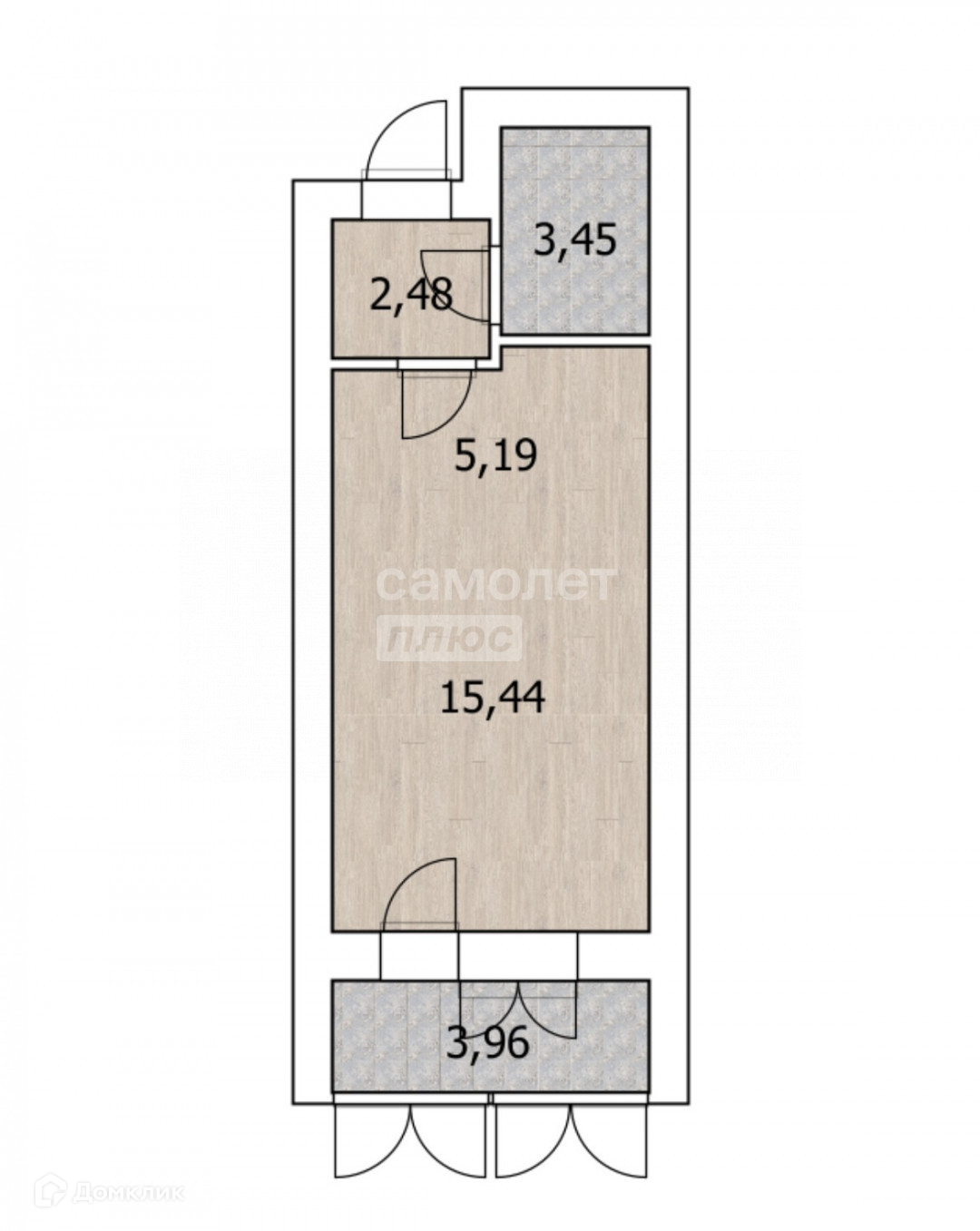 Жилая площадь 15.44 м2