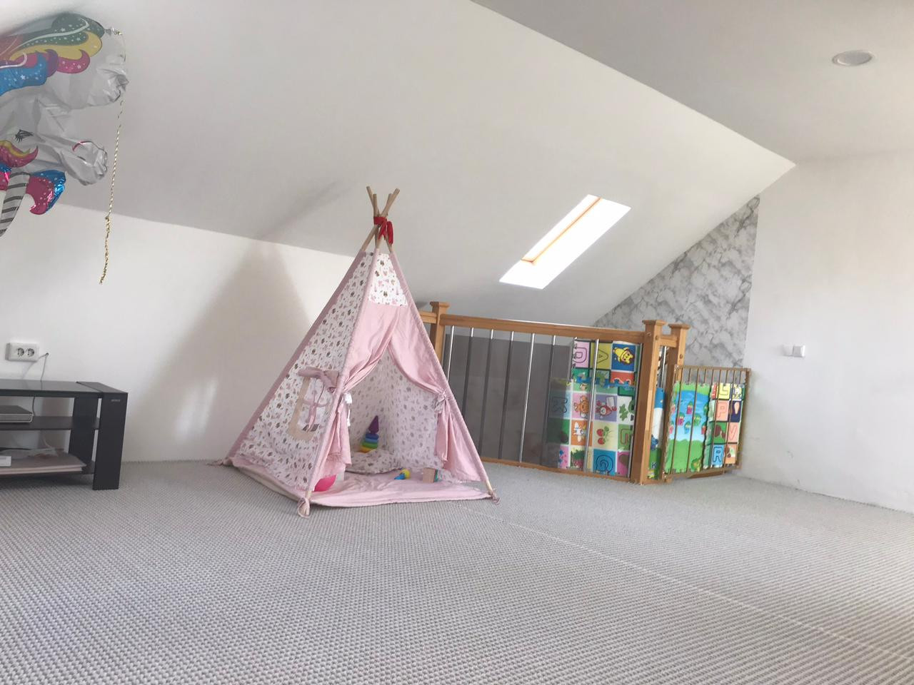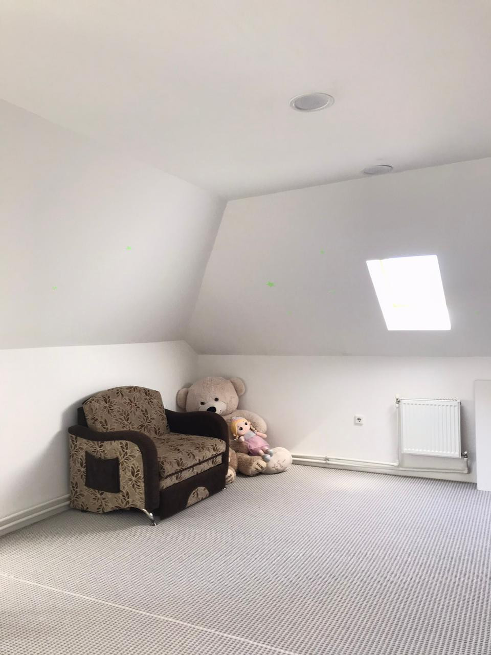3 этаж - мансарда 32 кв м. Тёплая, сделана как игровая для детей.