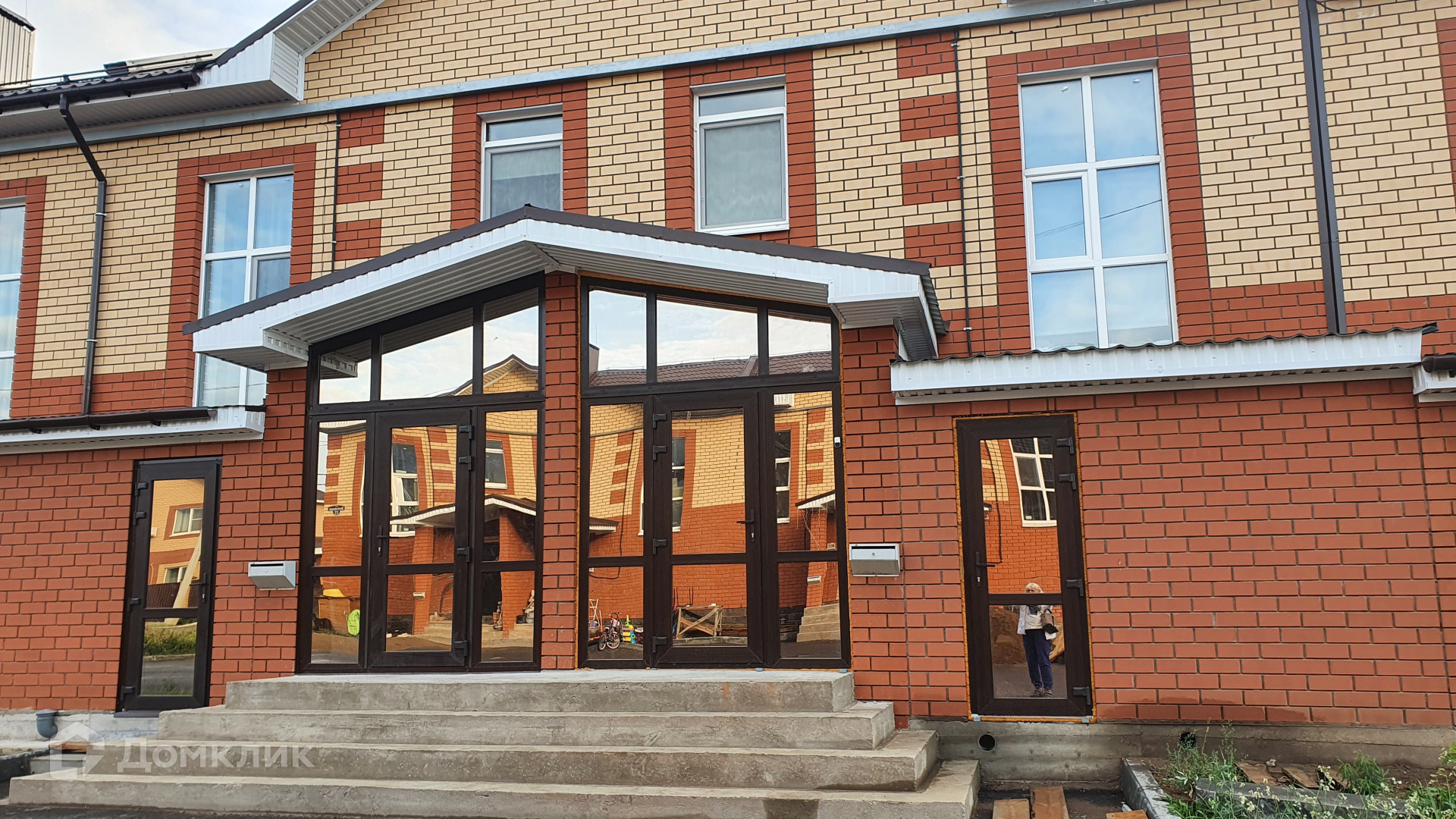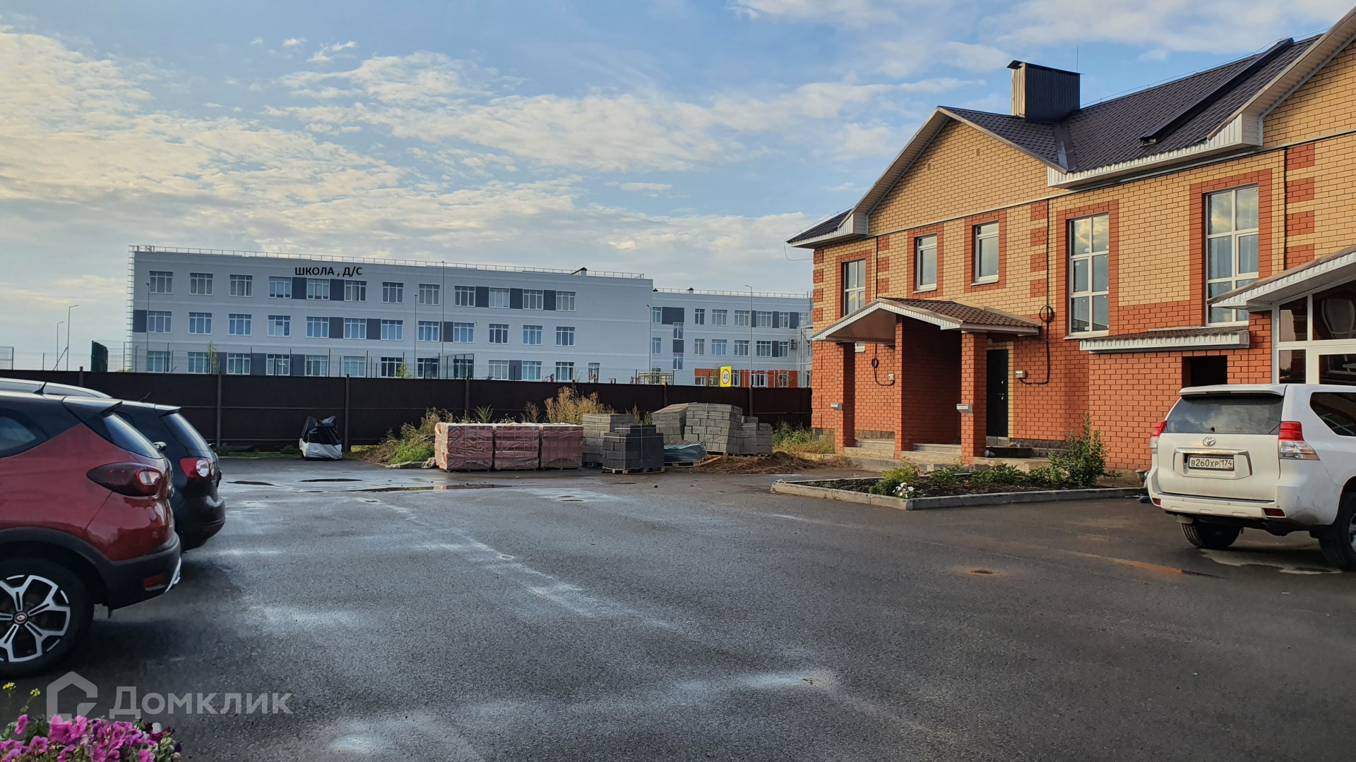 Развитая инфраструктура, магазины, детские спортивный площадки, тенисный центр, парк, остановка общественного транспорта все в шаговой доступности. Школа и детский сад видны через забор.