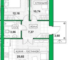 Общая площадь: 74.3 м2