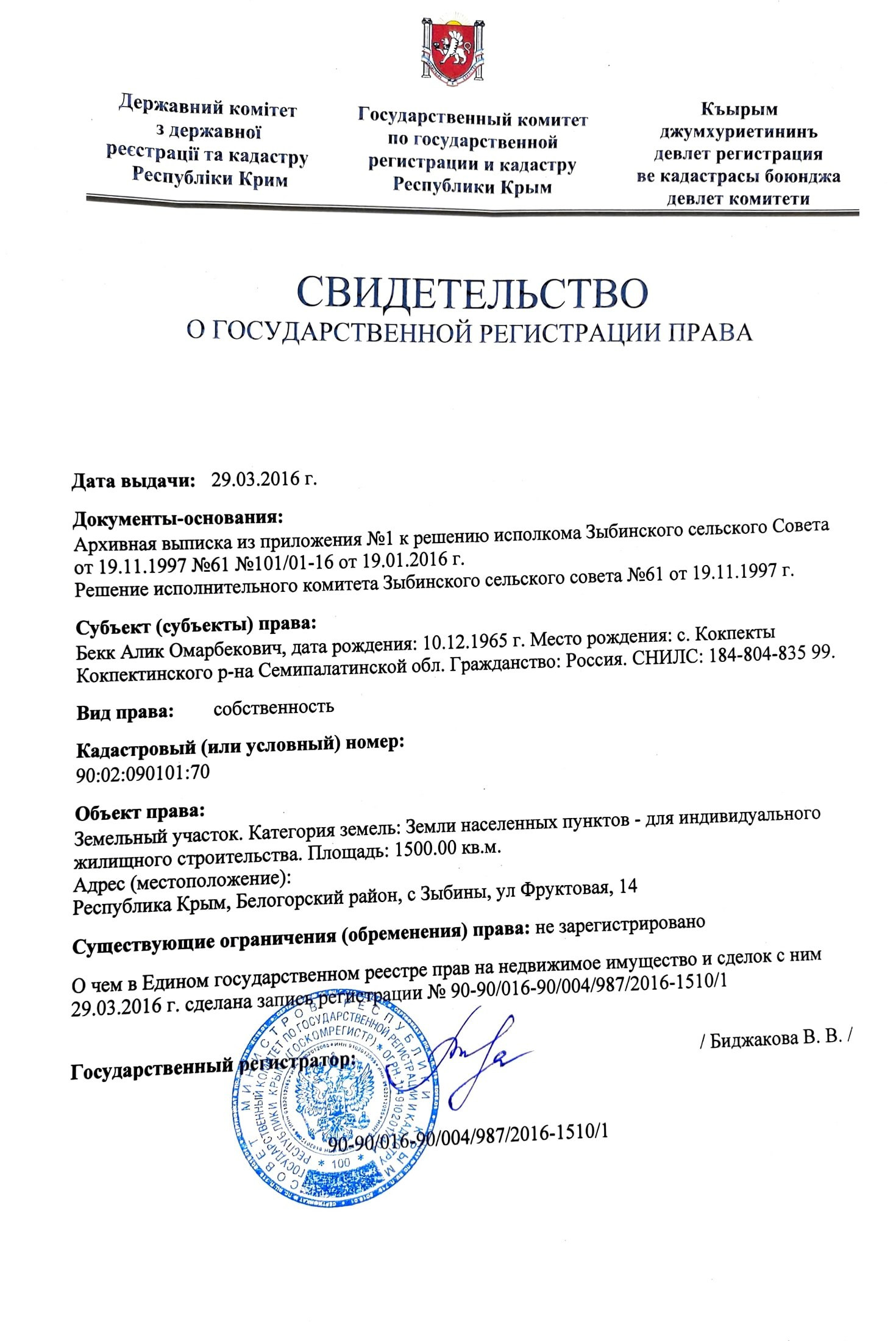 Крым, село Зыбины, Фруктовая улица, 16