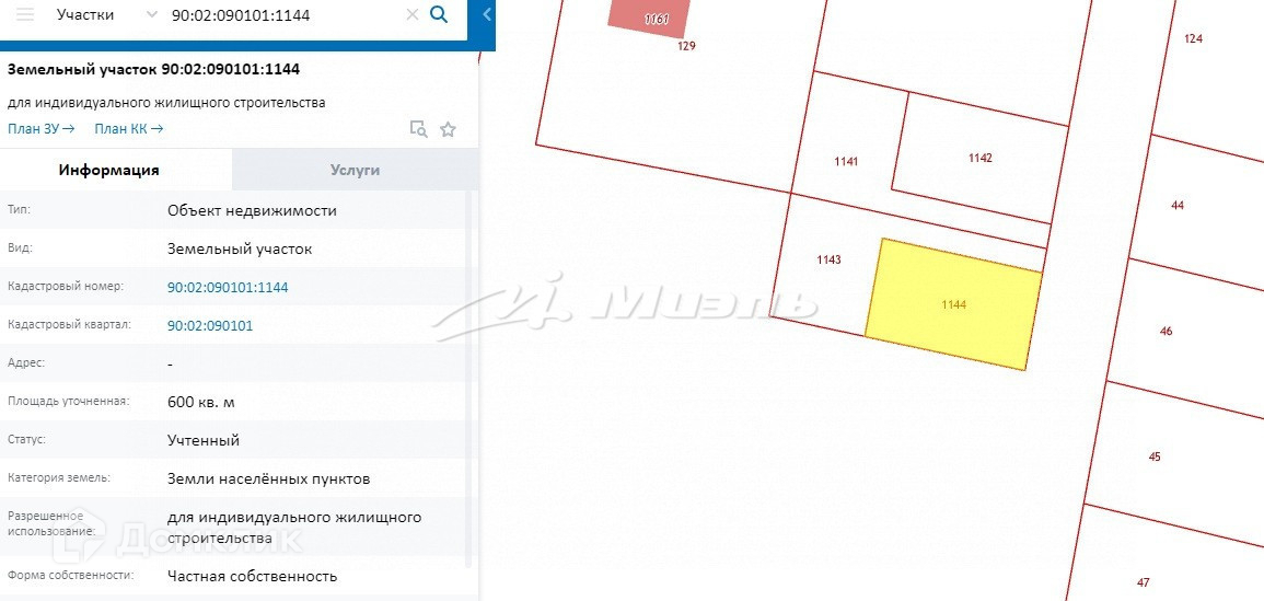Кадастровый номер: 90:02:0901016:1143  и 90:02:0901016:1144