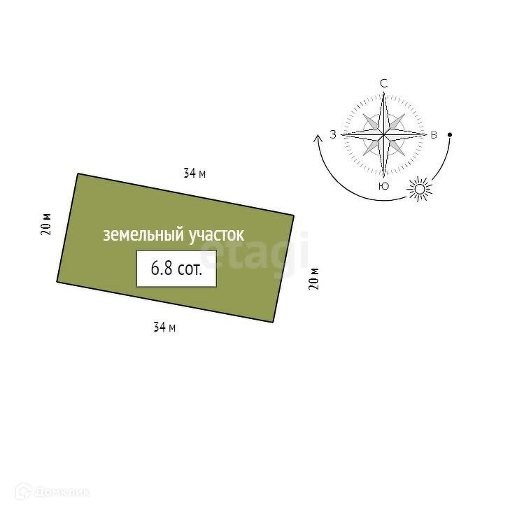 Площадь участка 6.8 сот.