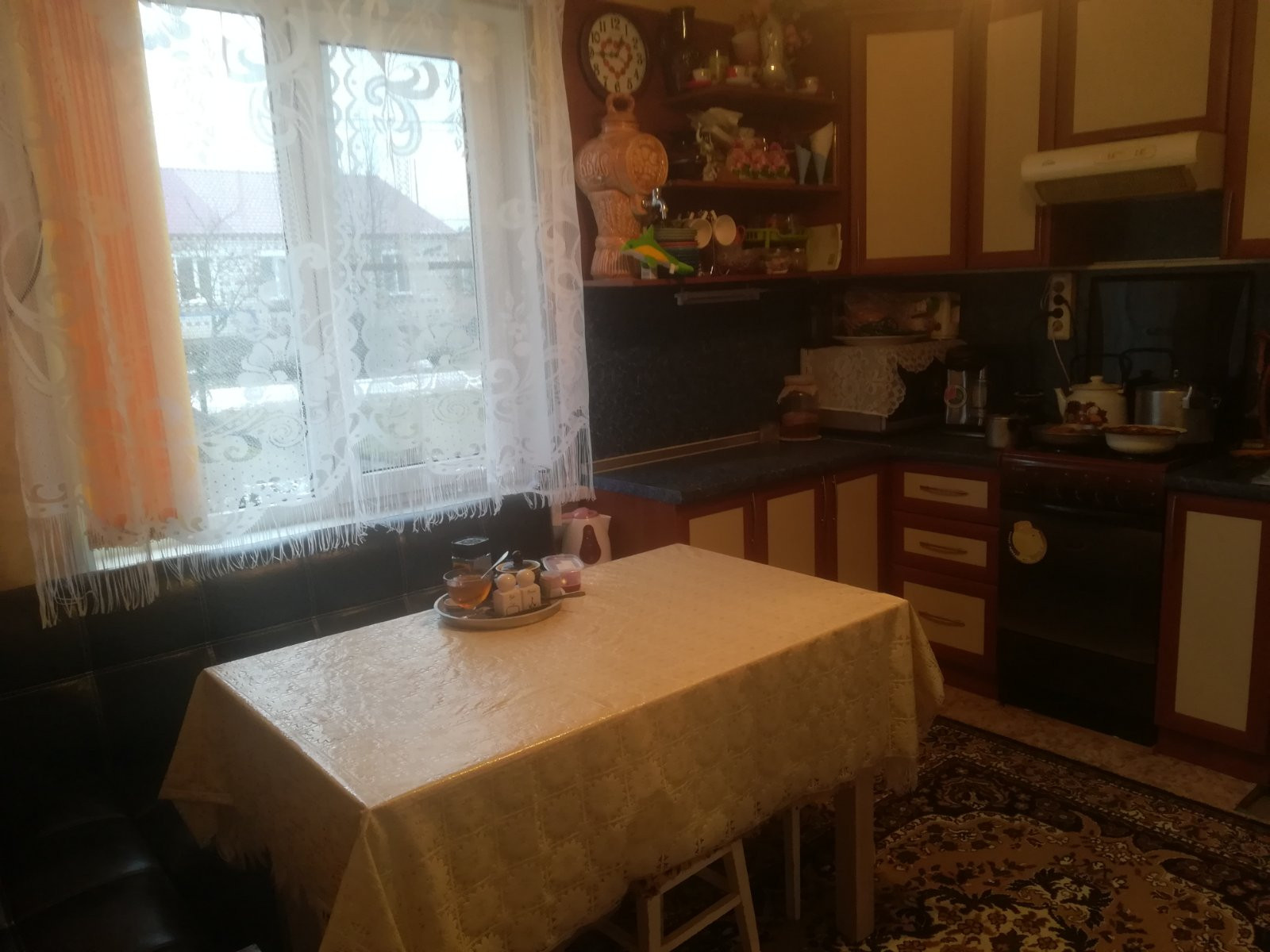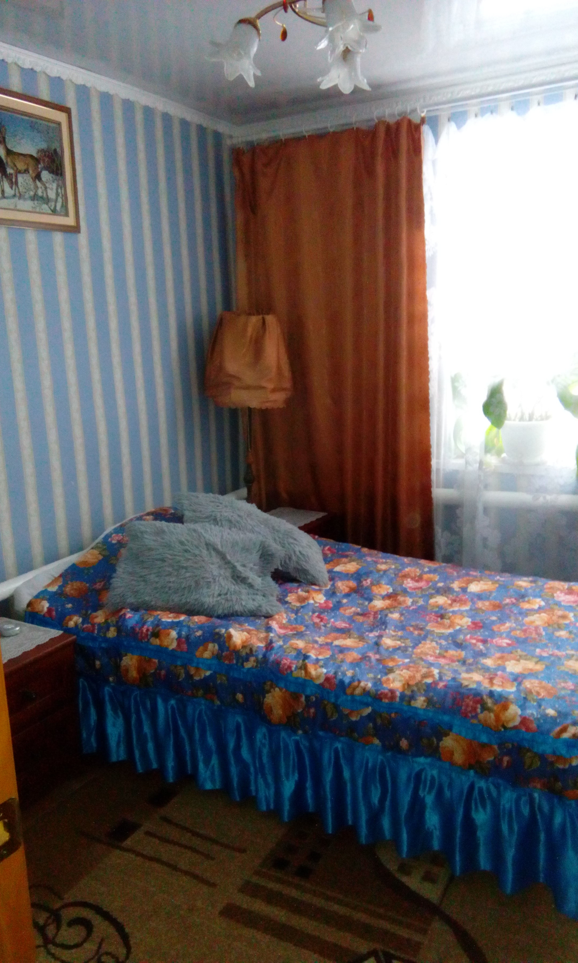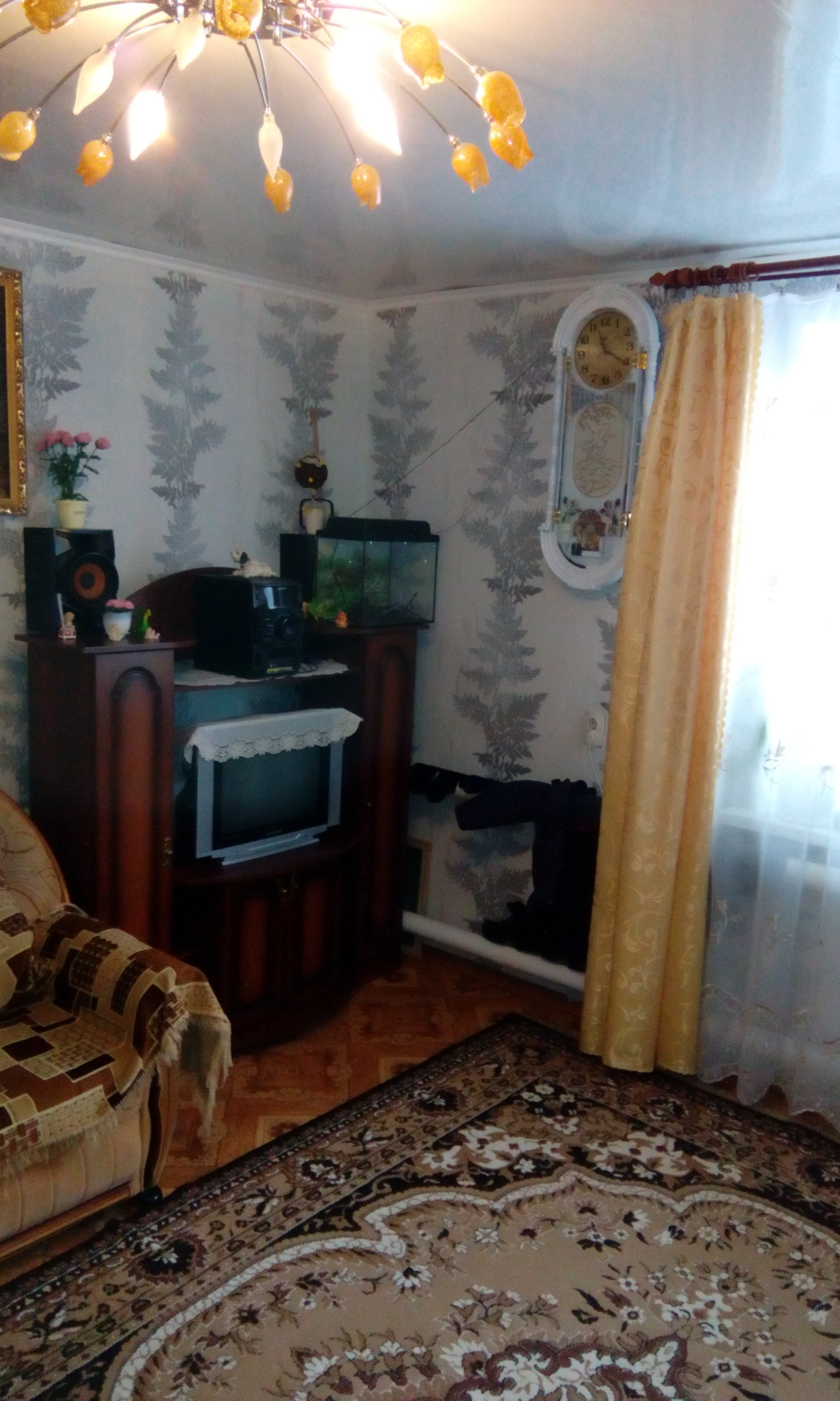 В доме: кухня (12 кв.м), зал (18 кв.м), 2 комнаты (16 и 9 кв.м ), сан.узел (ракована,унитаз,душевая кабина) (4 кв.м), большая прихожая (10 кв.м), коридор (4 кв.м), кладовка со спуском в подвал (7 кв.м), летняя комната (6 кв.м), подвал (48 кв.м). Состояние дома хорошее , пол-ленолиум, сан.узел -частично плитка, потолки панель. На участке 2 теплицы, хоз.постройки, двор, гараж, большой огород, курятник, баня (в хорошем состоянии).