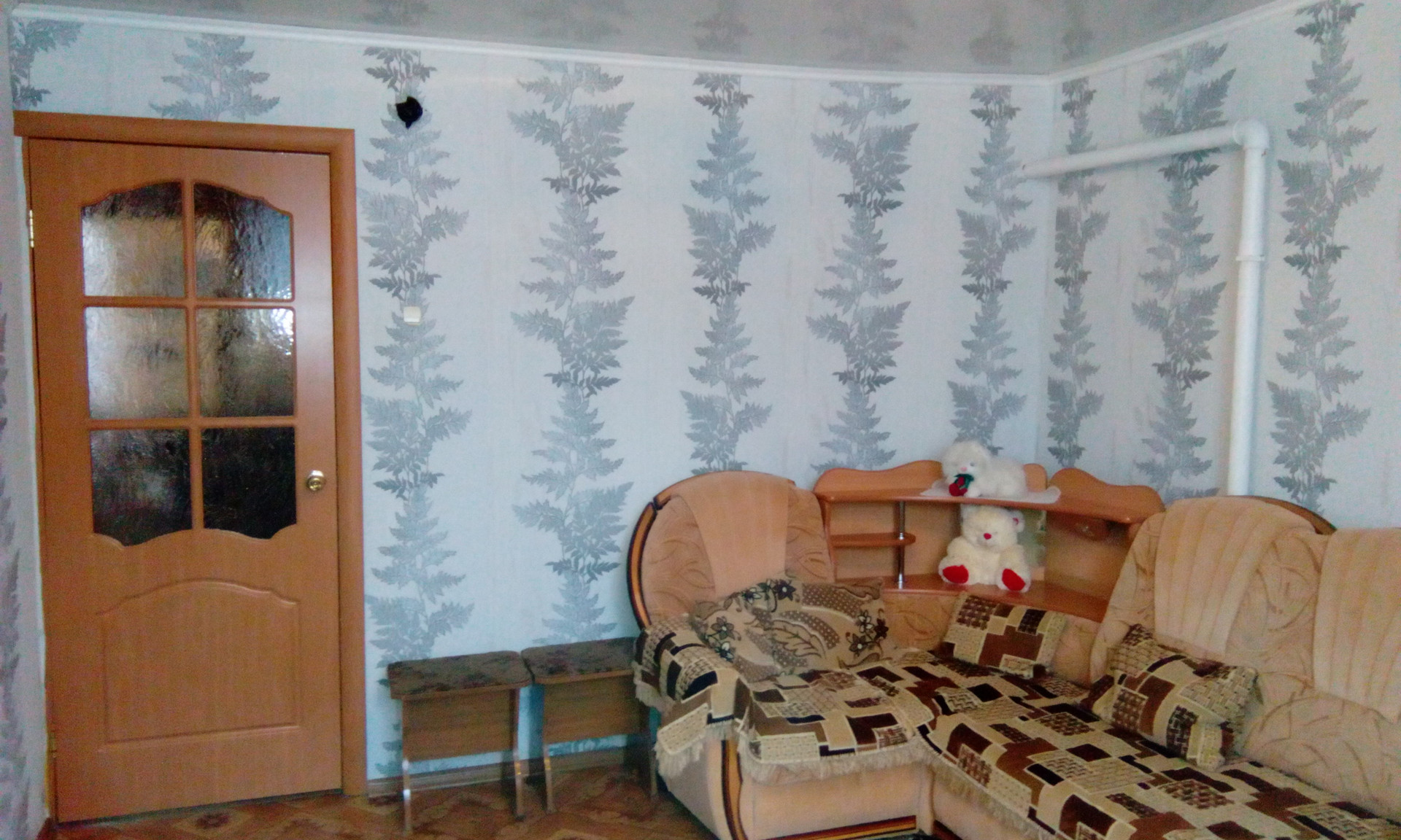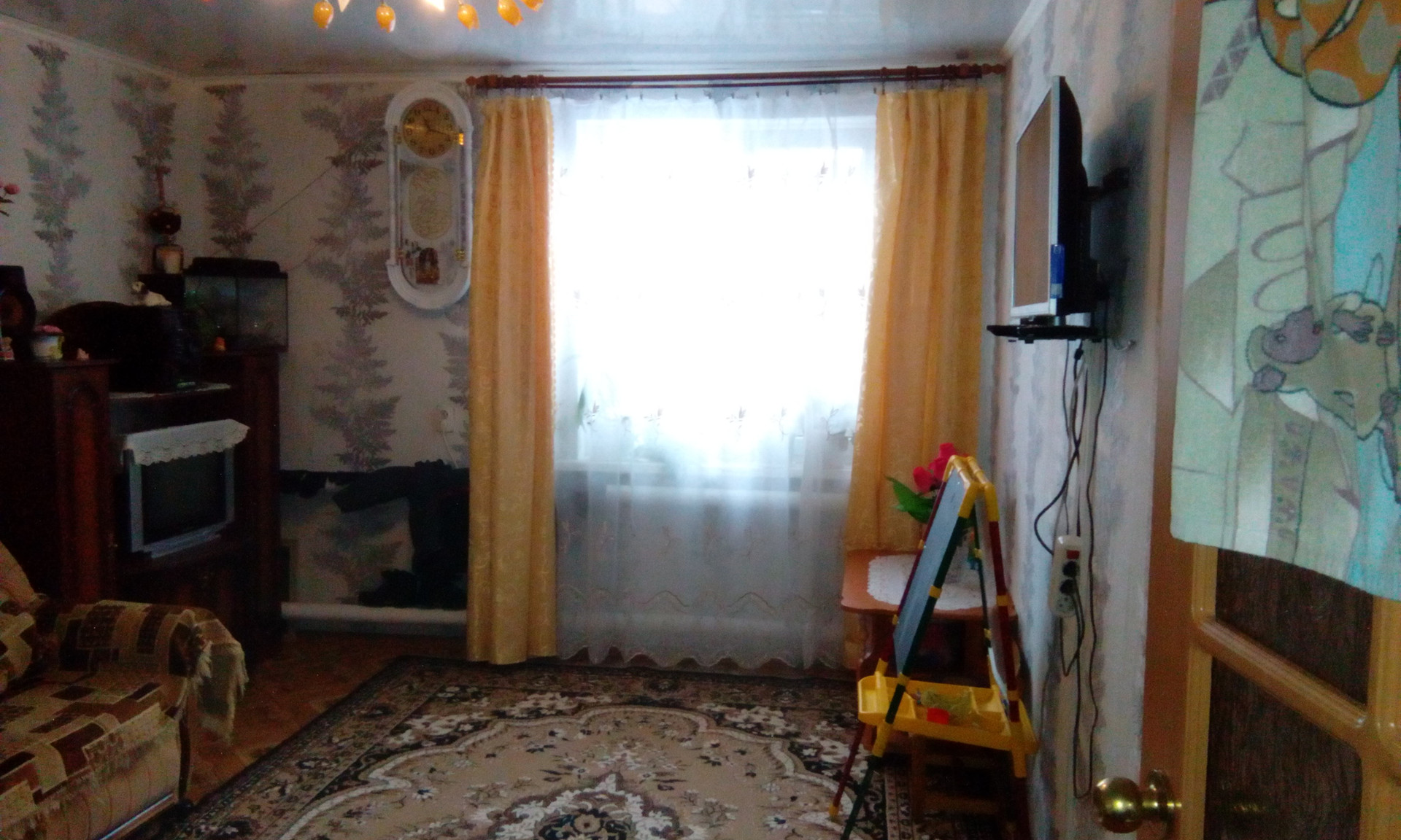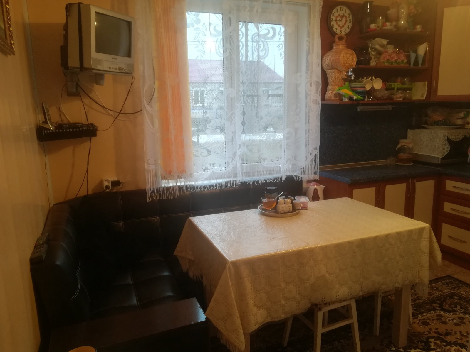 В доме: кухня (12 кв.м), зал (18 кв.м), 2 комнаты (16 и 9 кв.м ), сан.узел (ракована,унитаз,душевая кабина) (4 кв.м), большая прихожая (10 кв.м), коридор (4 кв.м), кладовка со спуском в подвал (7 кв.м), летняя комната (6 кв.м), подвал (48 кв.м). Состояние дома хорошее , пол-ленолиум, сан.узел -частично плитка, потолки панель. На участке 2 теплицы, хоз.постройки, двор, гараж, большой огород, курятник, баня (в хорошем состоянии).