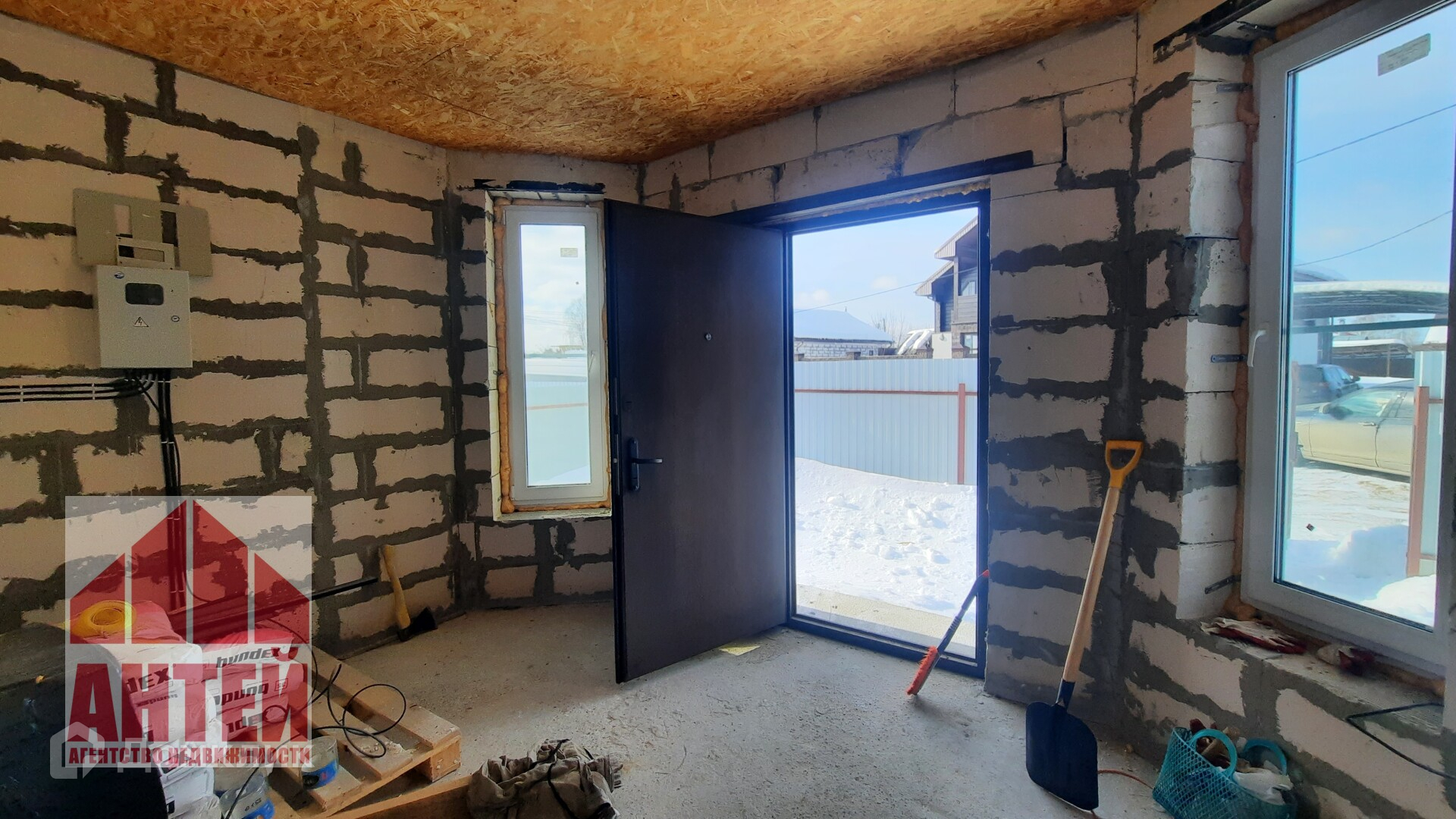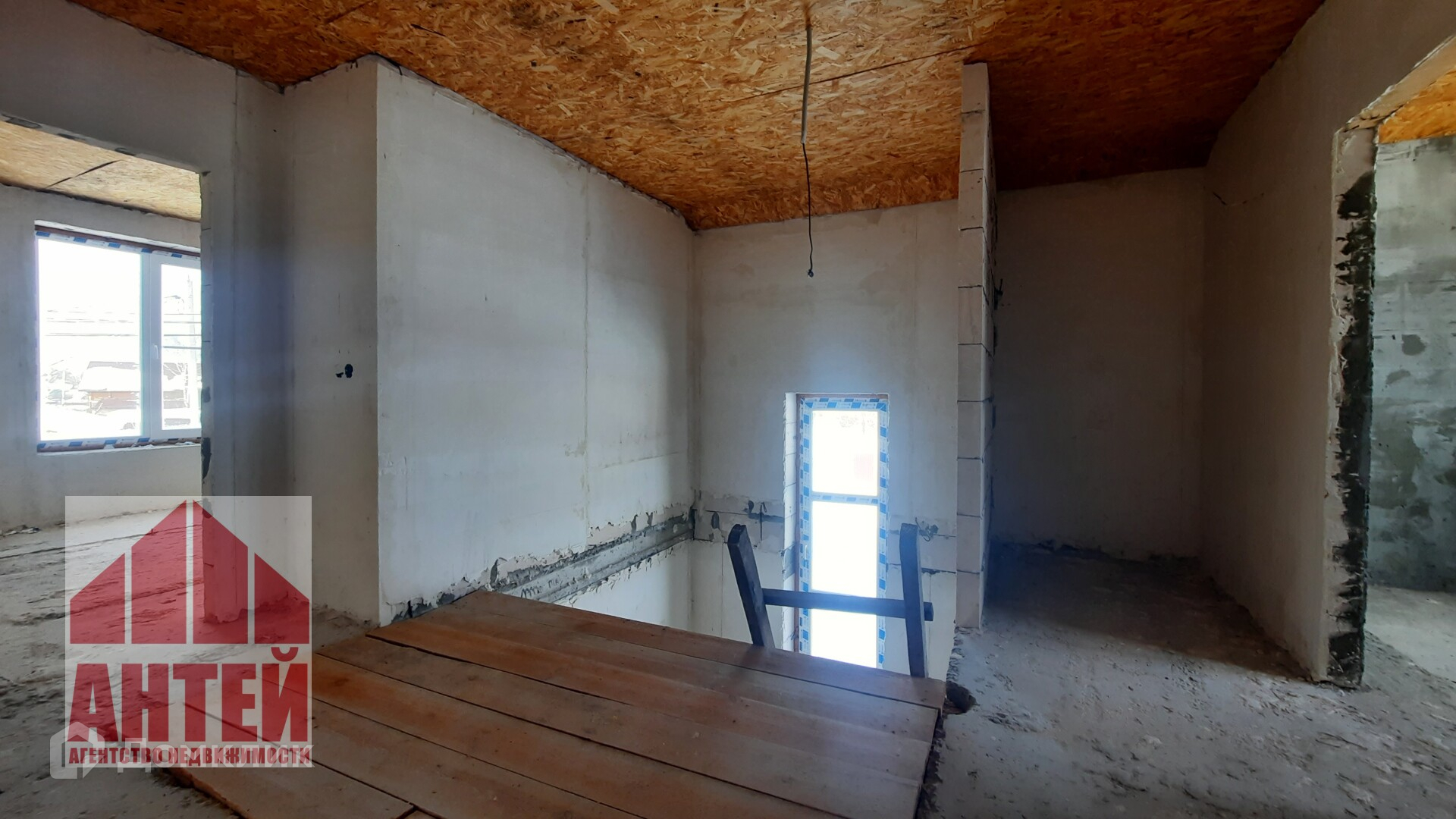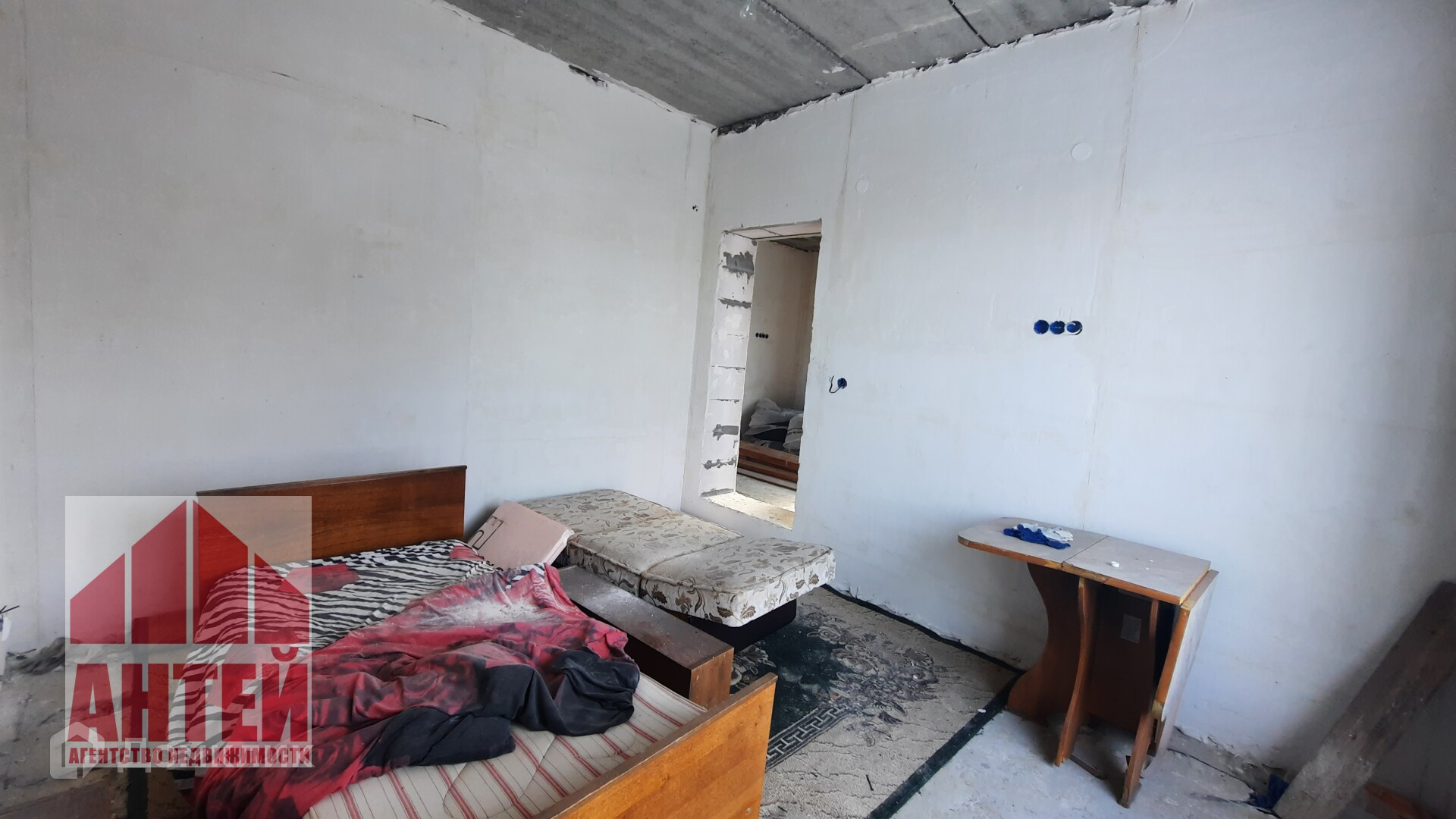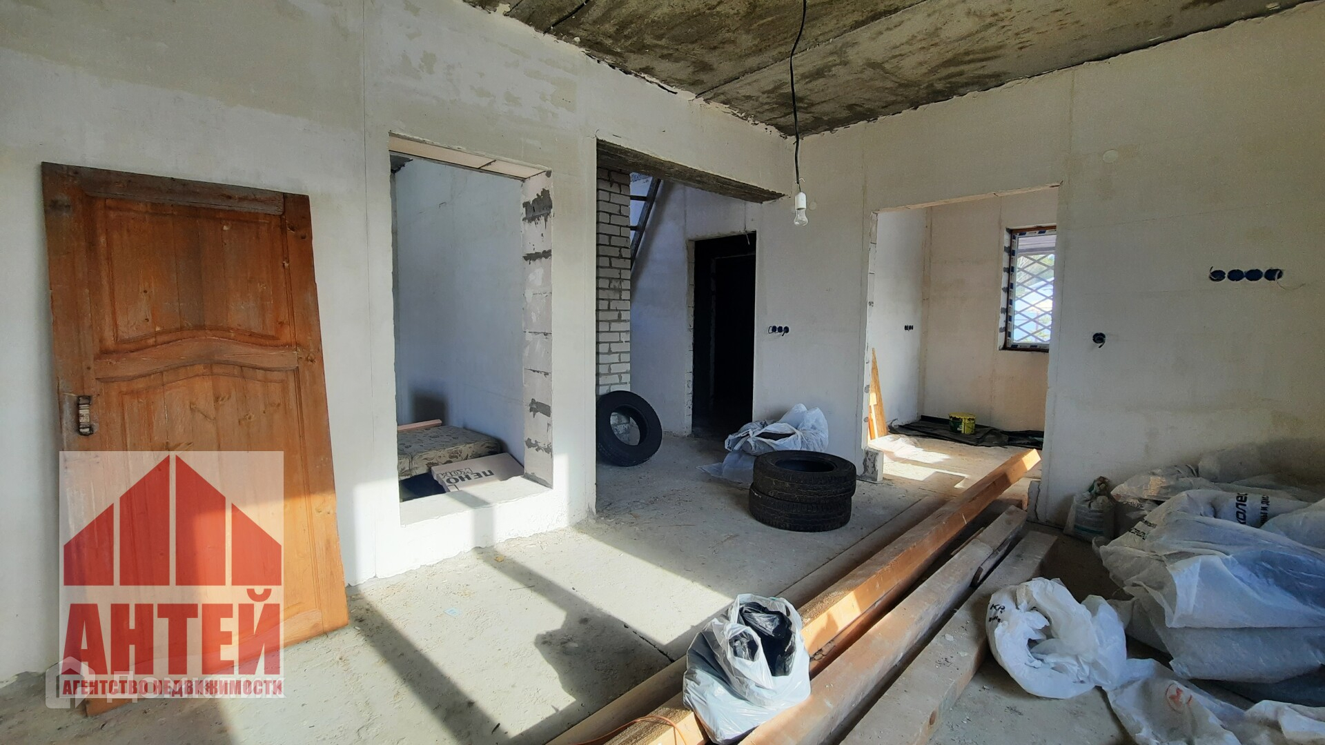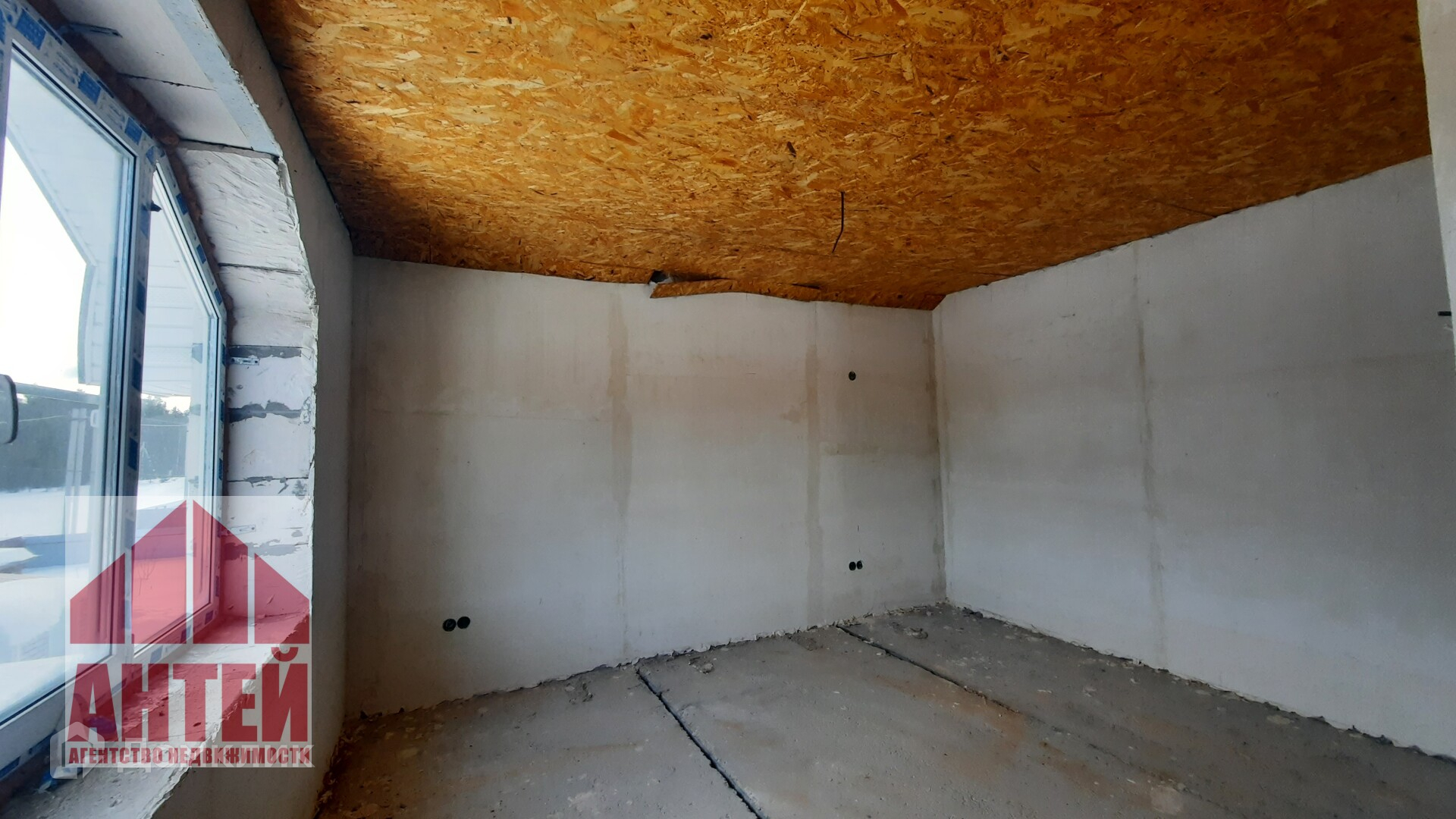 В доме перекрытия бетонные, стены из газосиликата. Стены заштукатурены.