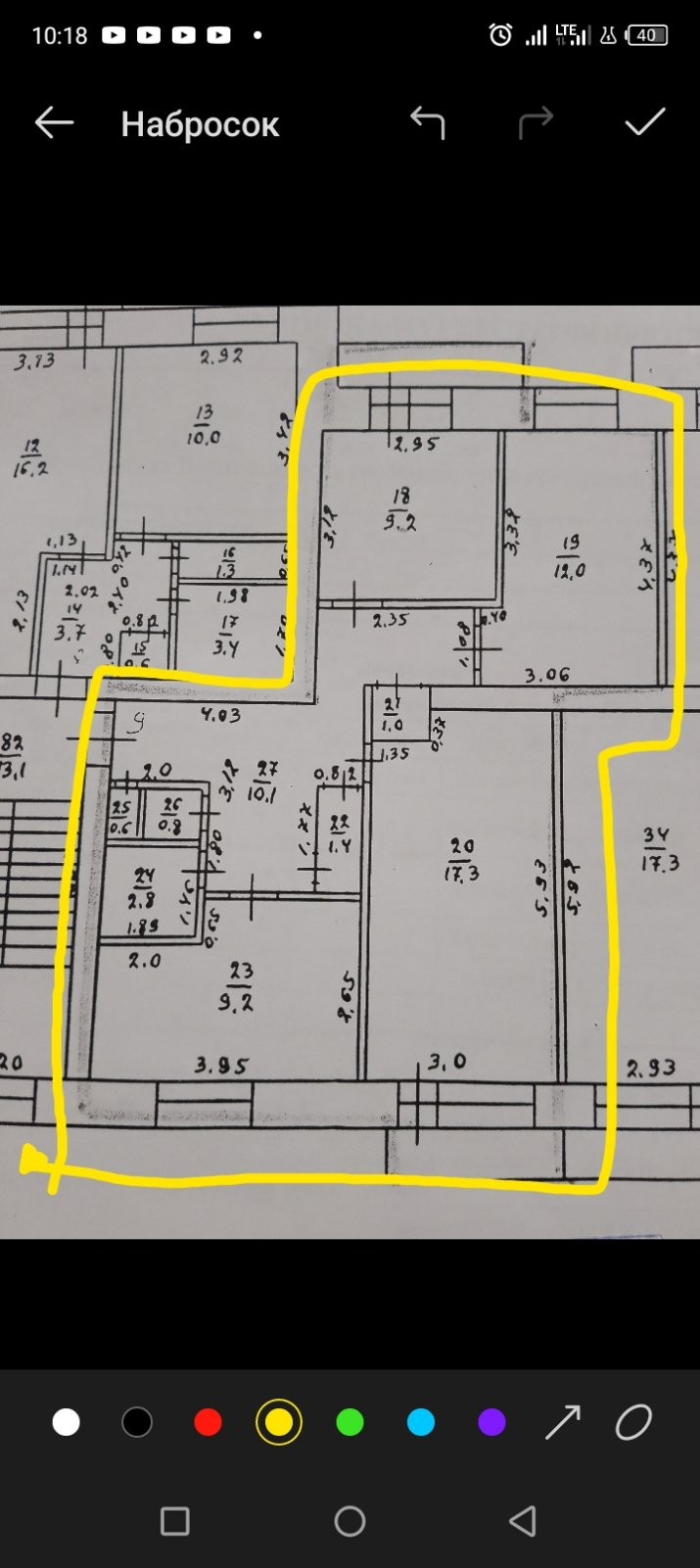 Жилая площадь 38.5 м2