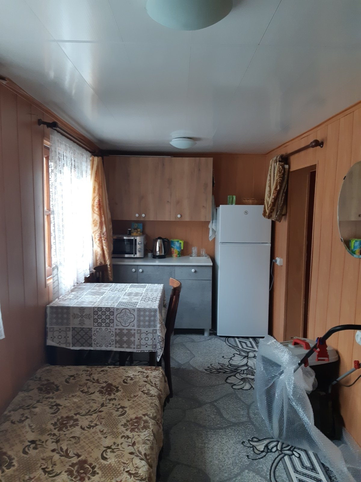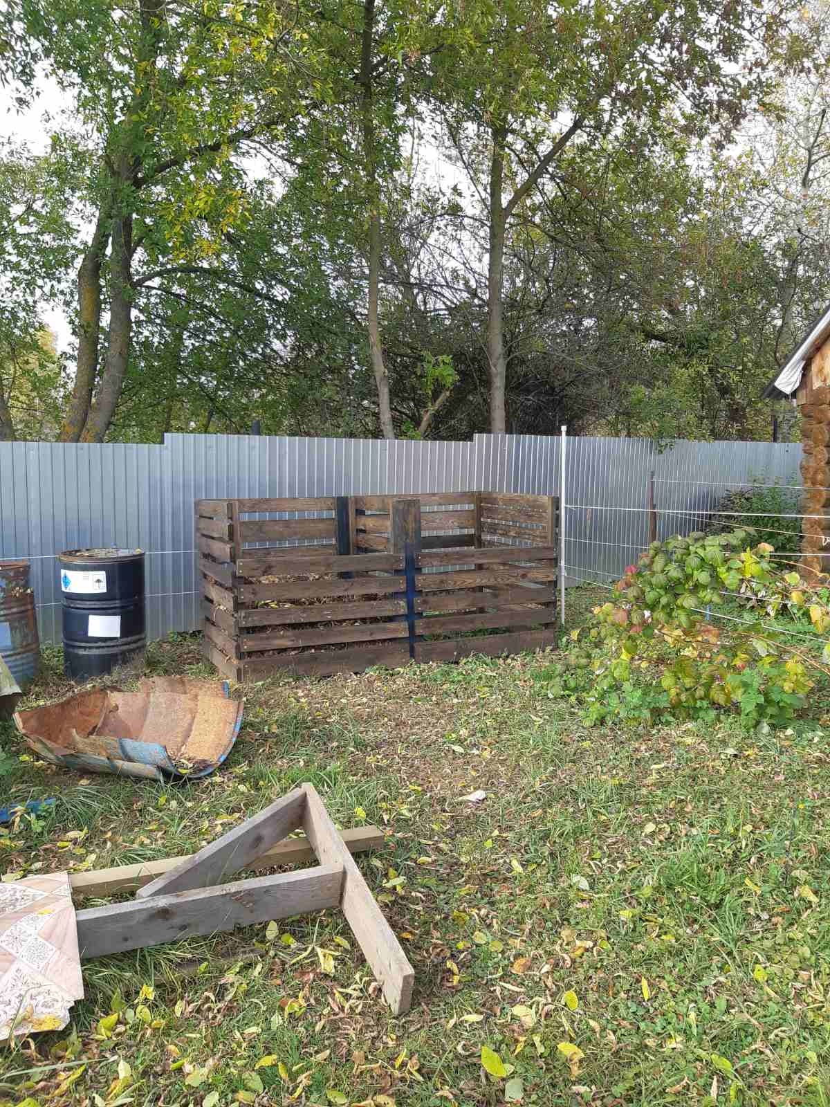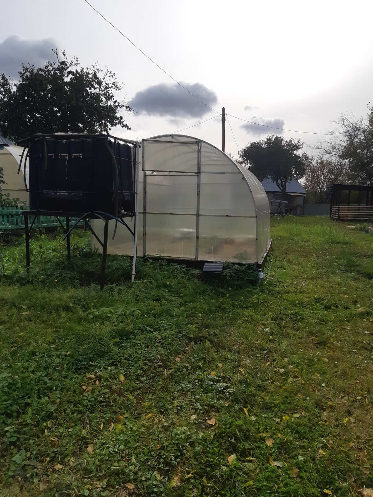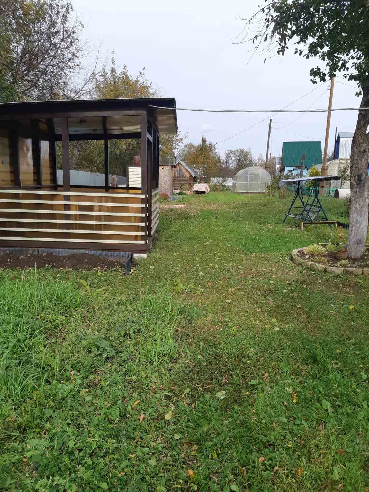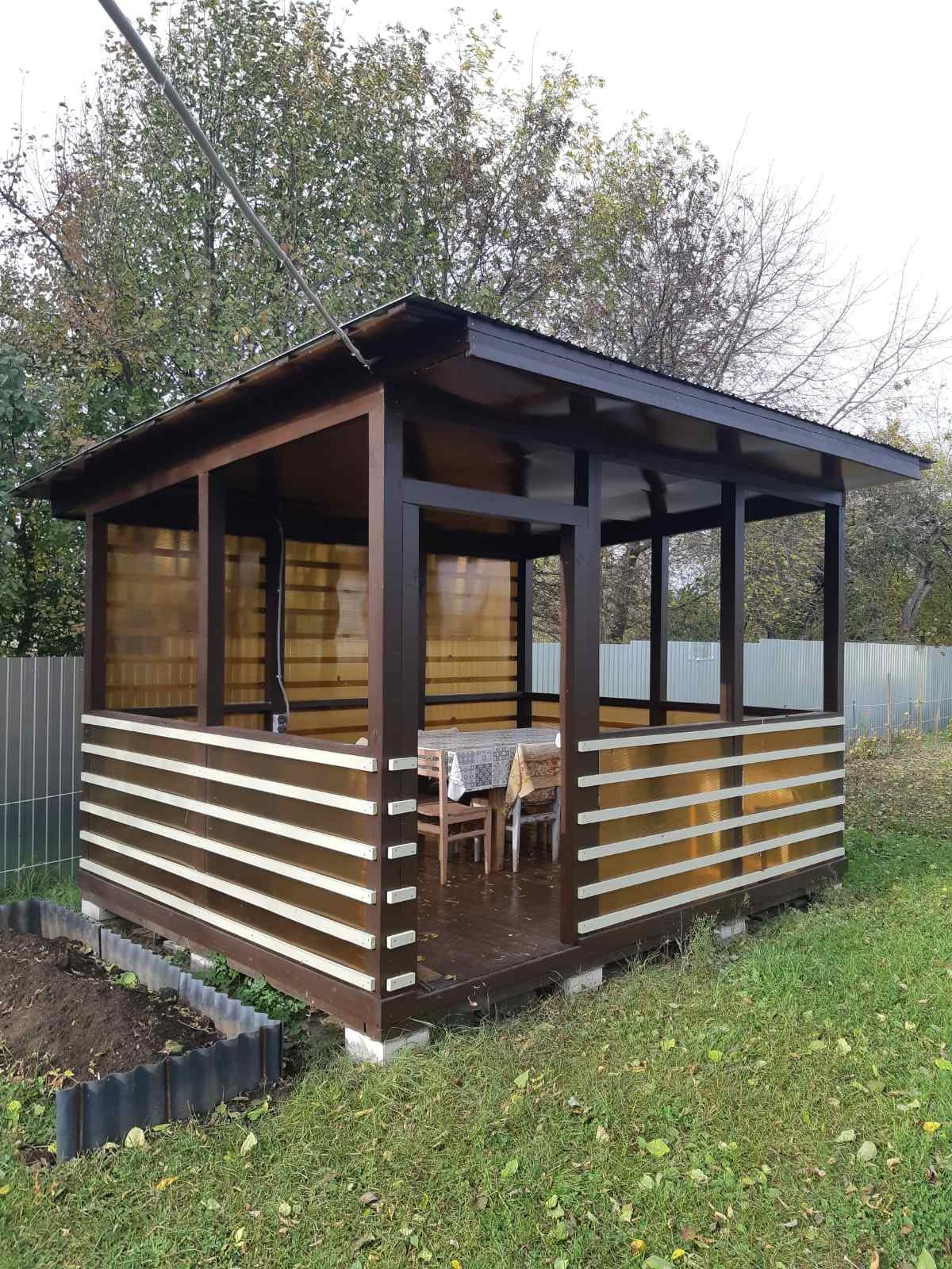 Хоз.постройка 2,5×4 м разделеная на две части: туалет + сарай. Шикарная беседка 3×4 м, низ и задняя стенка закрыта поликарбонатом ( защита от дождя и ветра), подведен свет и розетки.