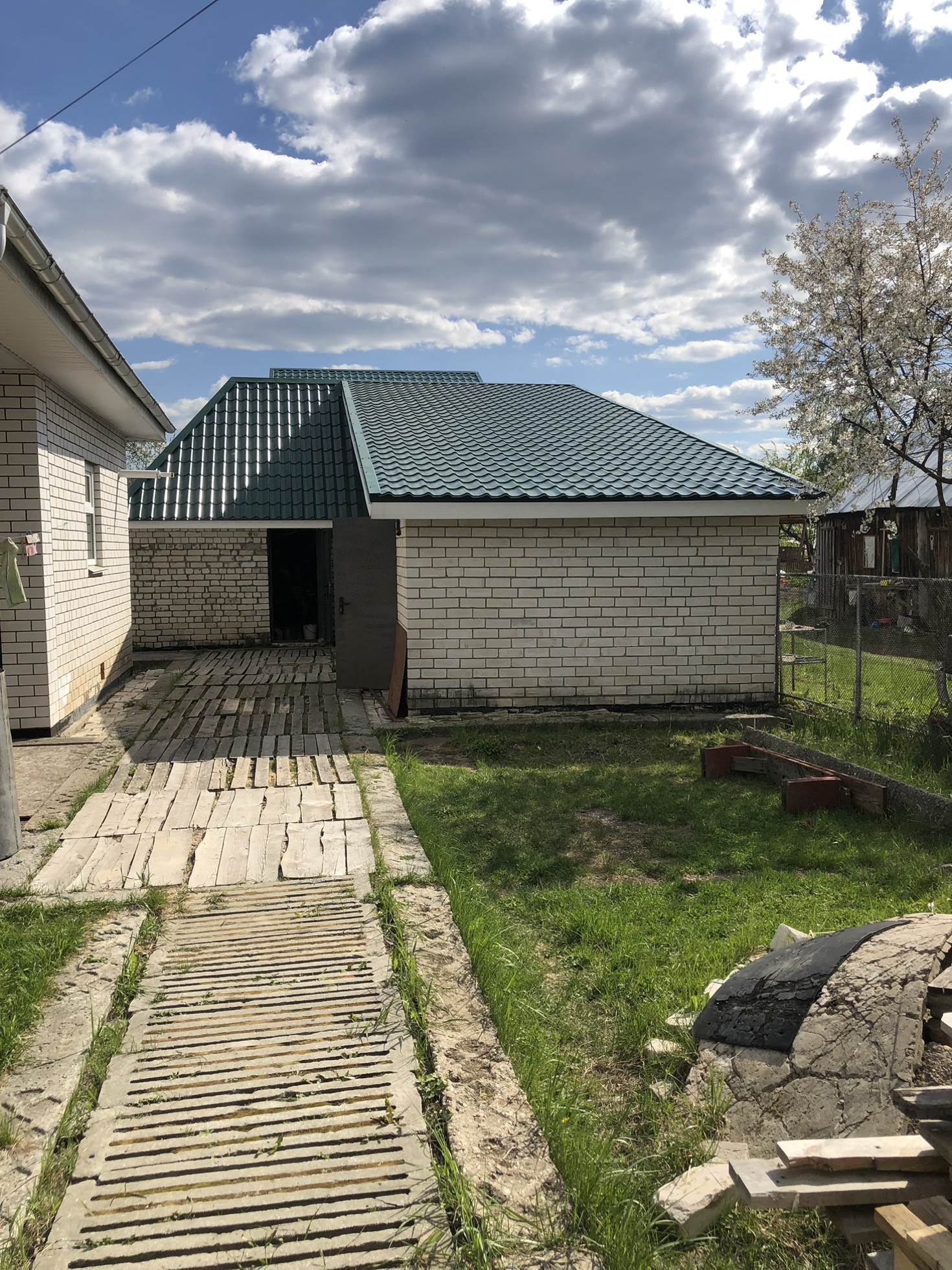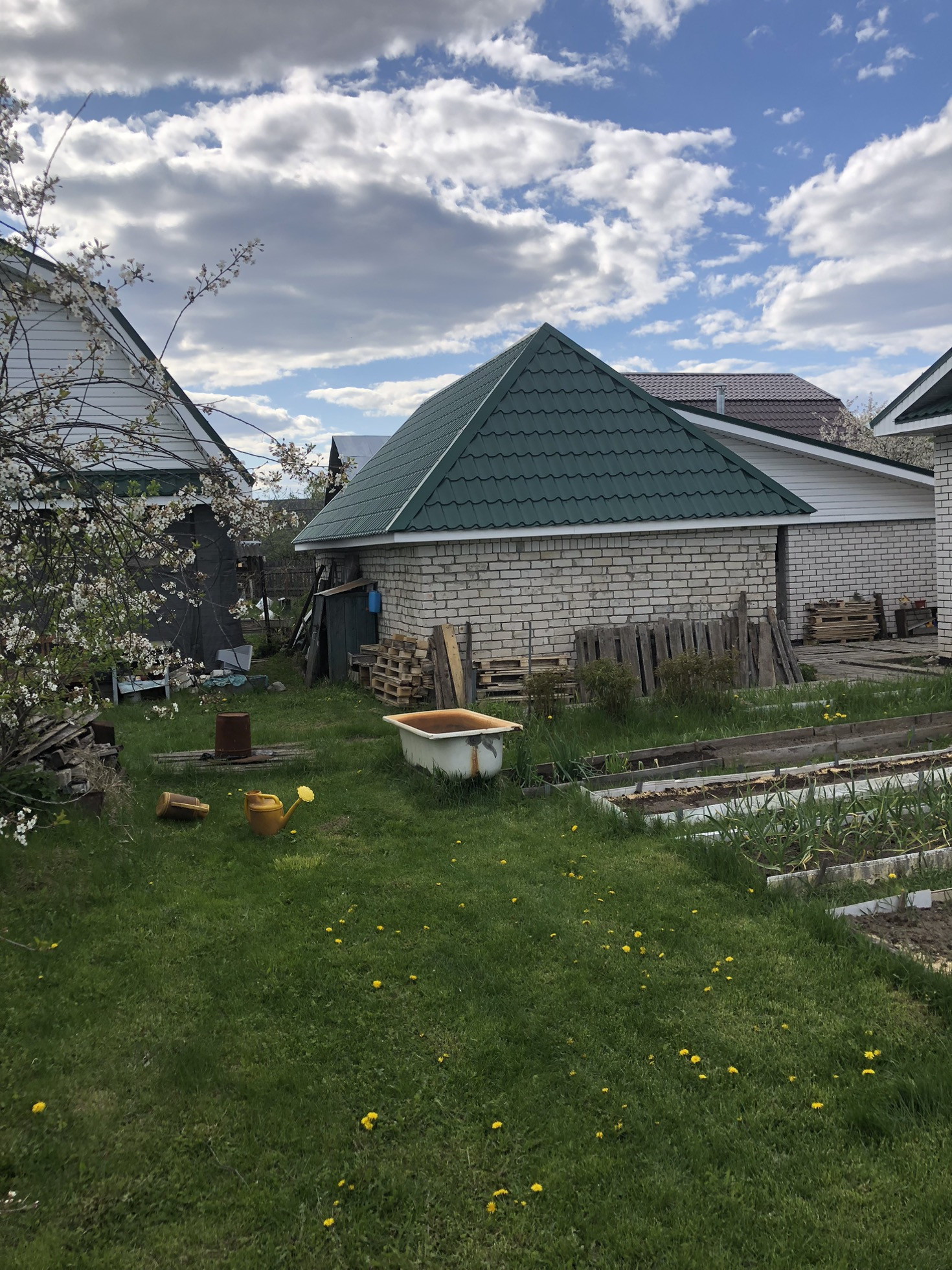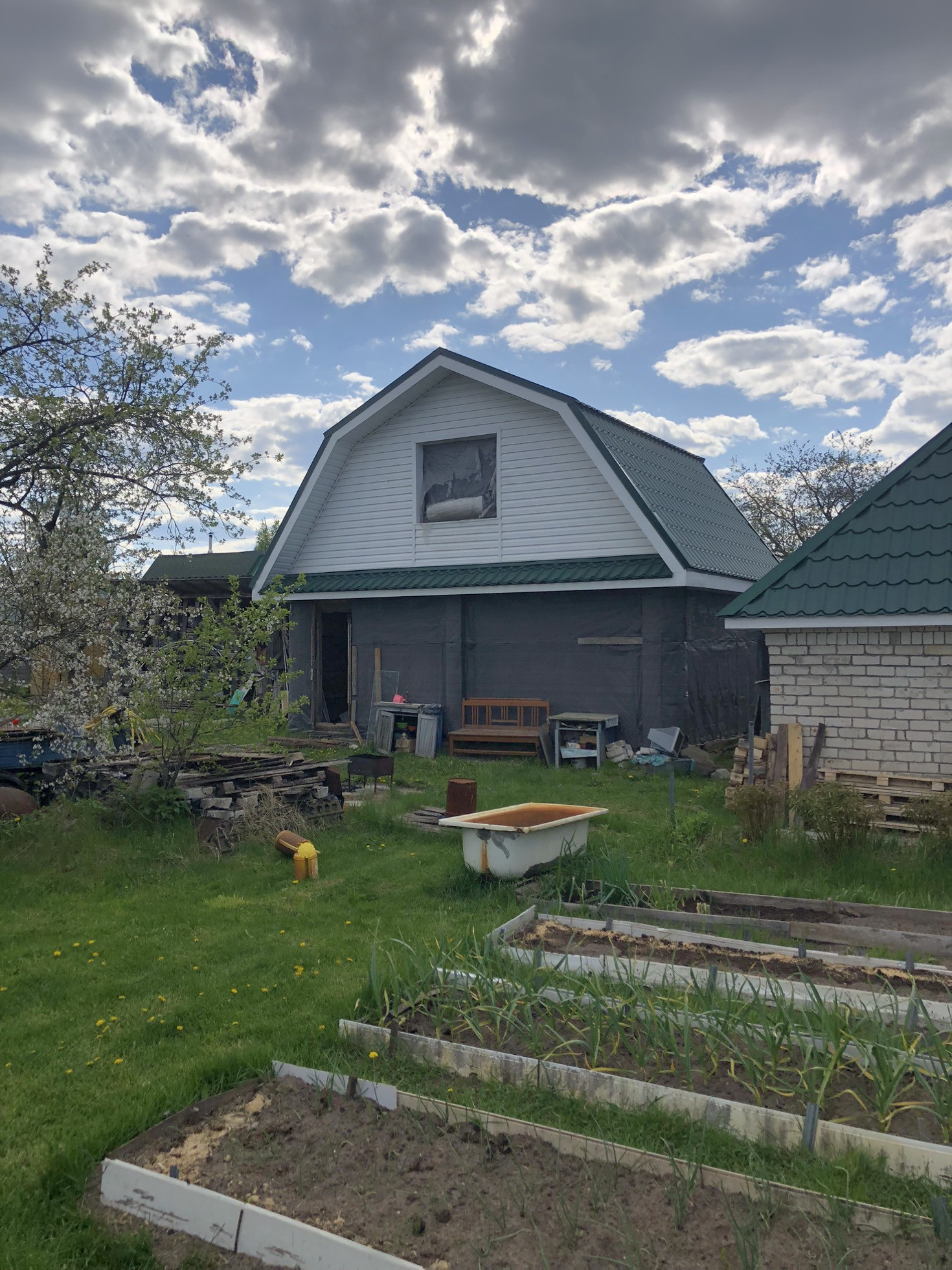 Часть участка полностью засеяна газонной травой. Планировалось обустроить хорошую зону отдыха…