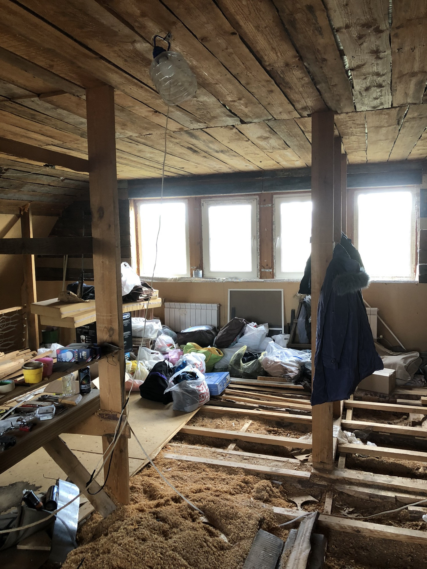 Предбанник и мансардный этаж утеплены базальтовой ватой.