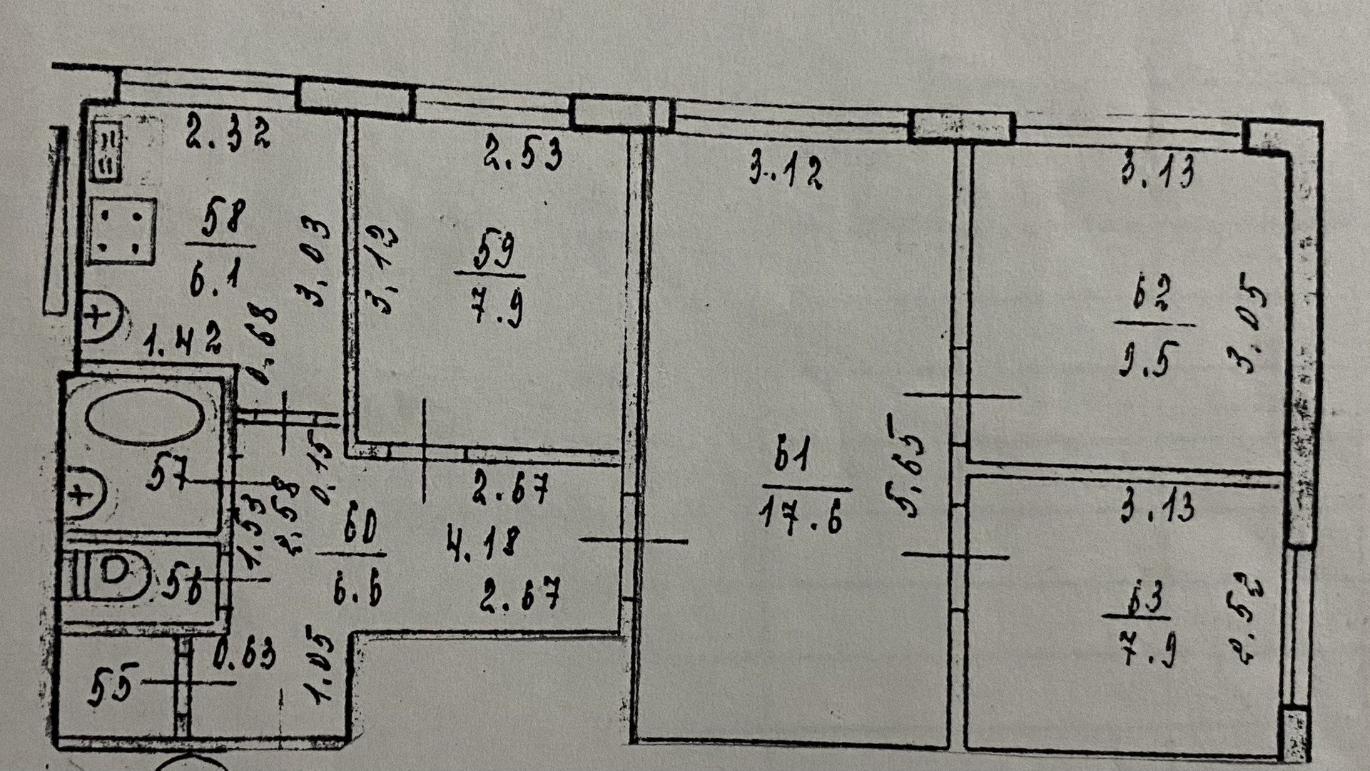 Общая площадь 60,2 кв.м