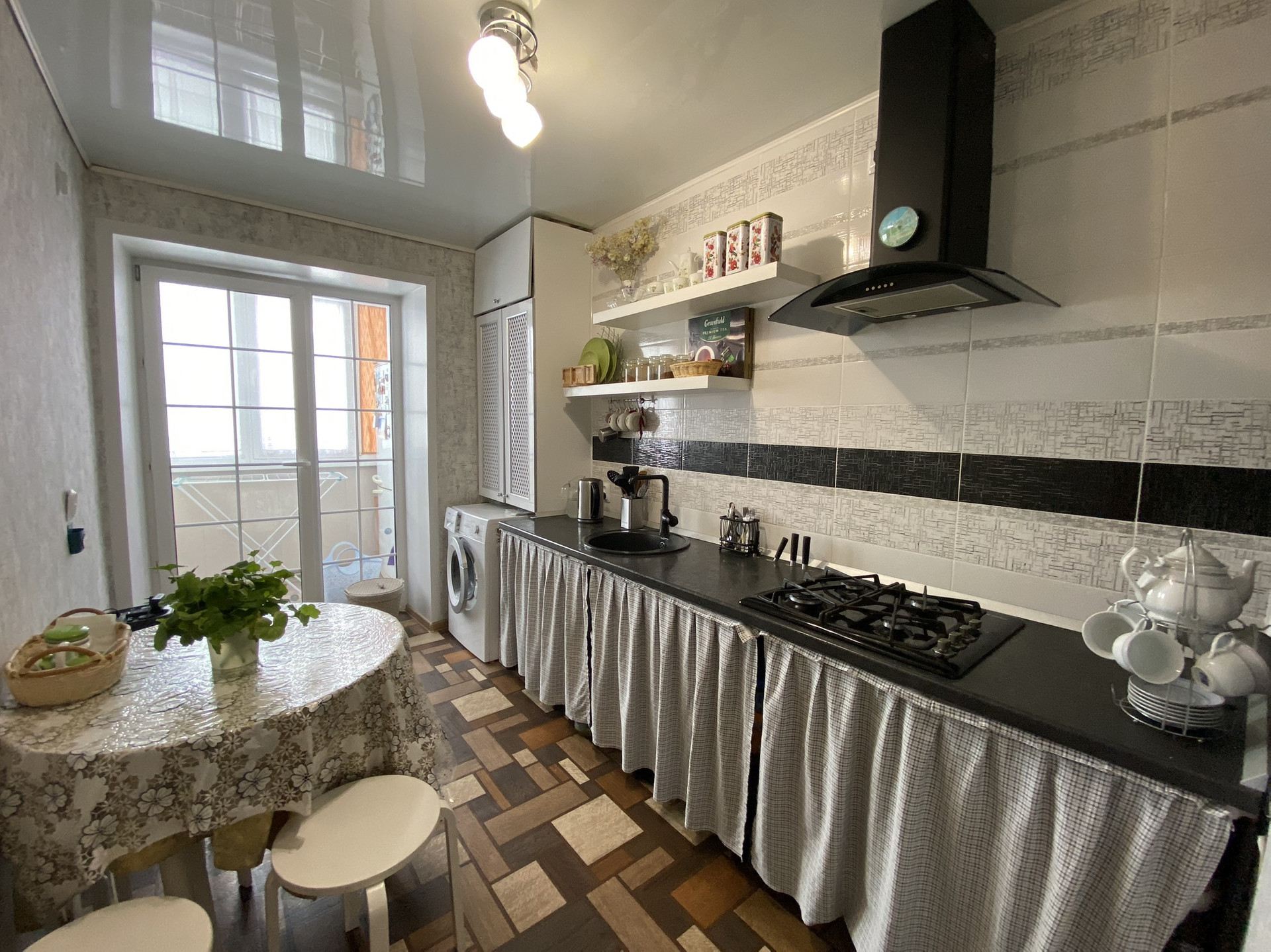 Свое газовое отопление,натяжные потолки.