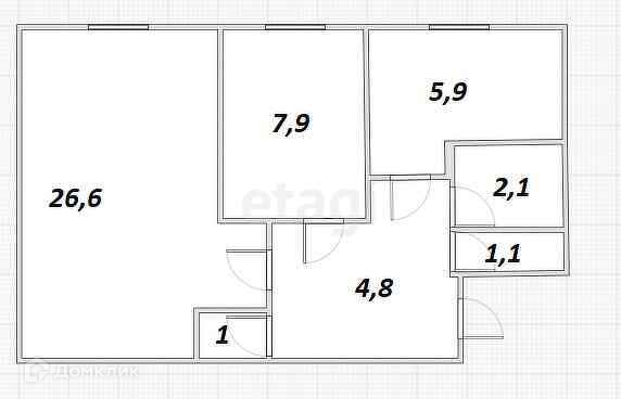 Общая площадь 49.4 м2